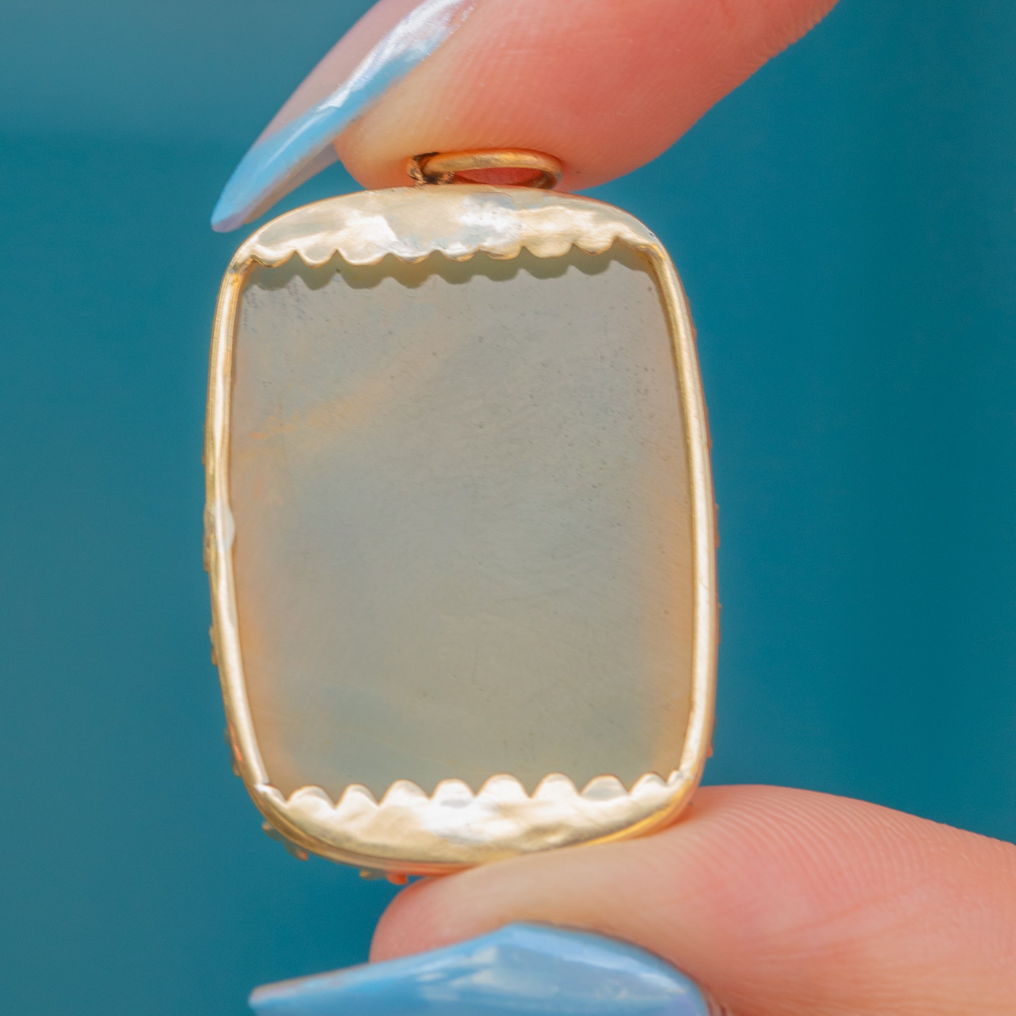 VERY GOOD-EXCELLENT: With a smooth, glossy surface, the Agate is radiant and sits securely within its settings. There are some moderate scratches present to the upper right side of the stone, however these mimic natural inclusions and is to be expected with a pendant as old as she is! With a securely soldered jump ring, this Georgian pendant can be worn with utmost confidence.
