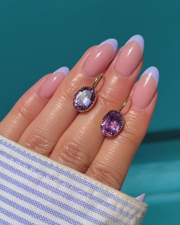 Amethysts are 9.5mm long x 7.5mm wide, weighing approx. 1.12ct combined.