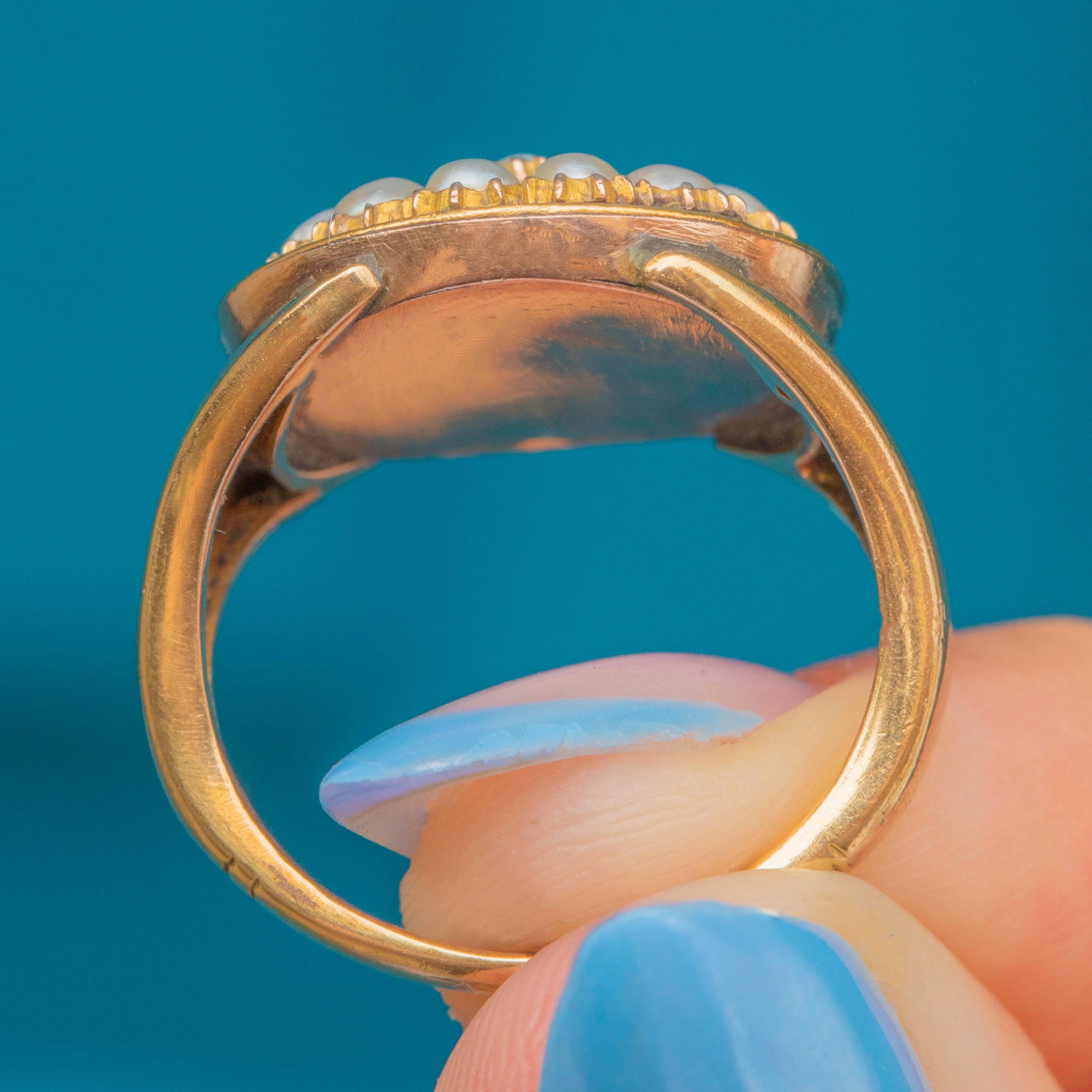 Providing wonderful finger coverage, this Pearl-adorned chunky round Enamel ring embodies the exquisite craftsmanship to come from the Georgian era.