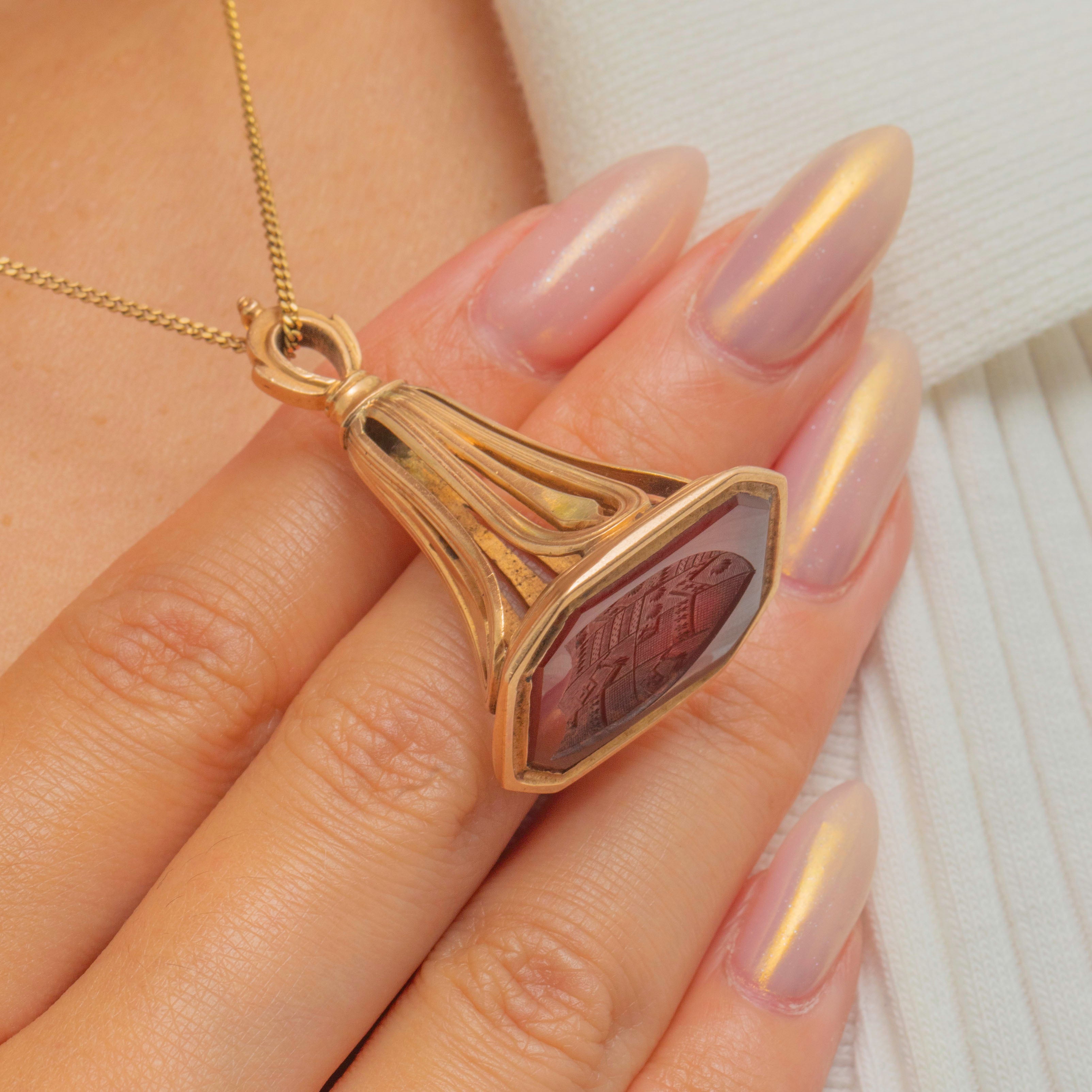 A striking Georgian Carnelian Agate intaglio fob pendant crafted in solid 15ct Gold, steeped in history and craftsmanship...