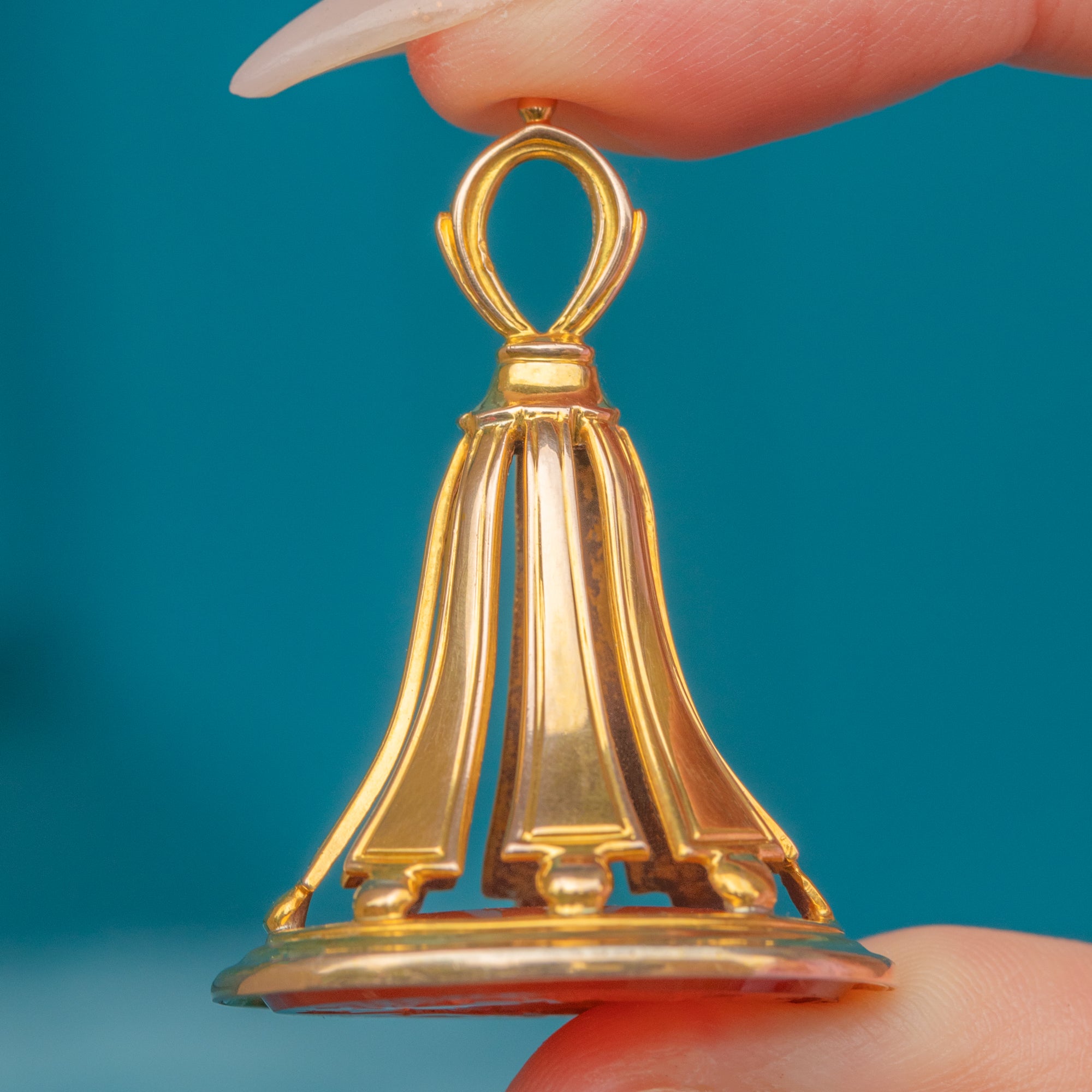 MATERIALS: Tests as 15ct Gold, Carnelian.