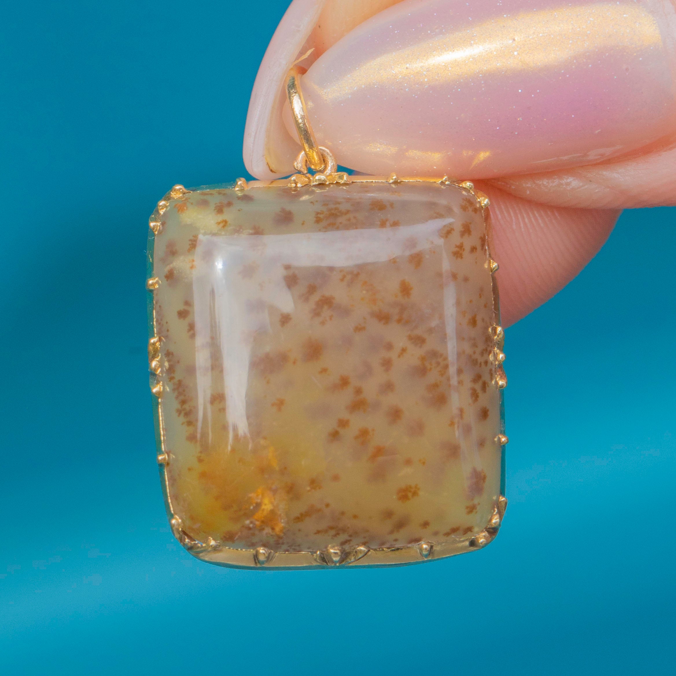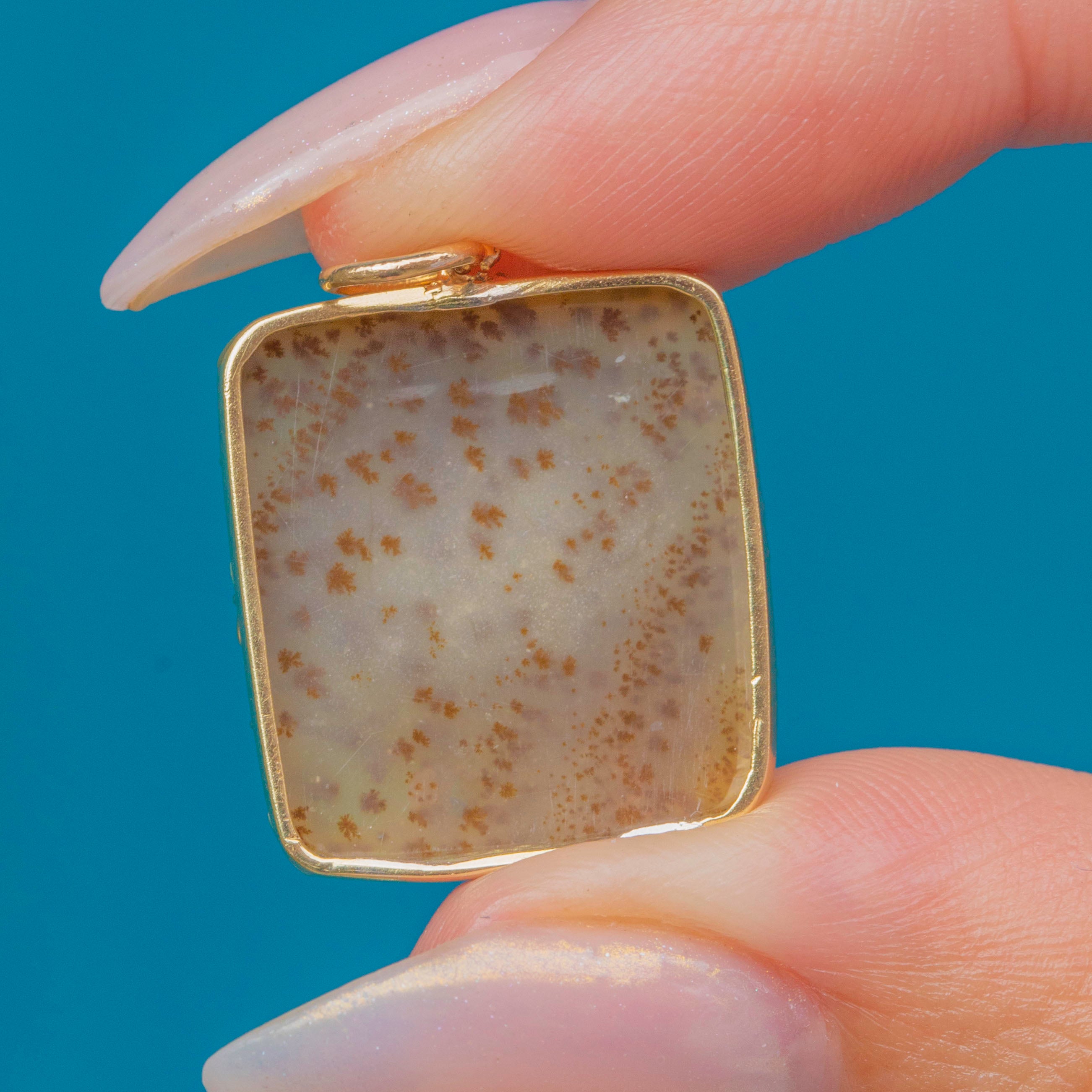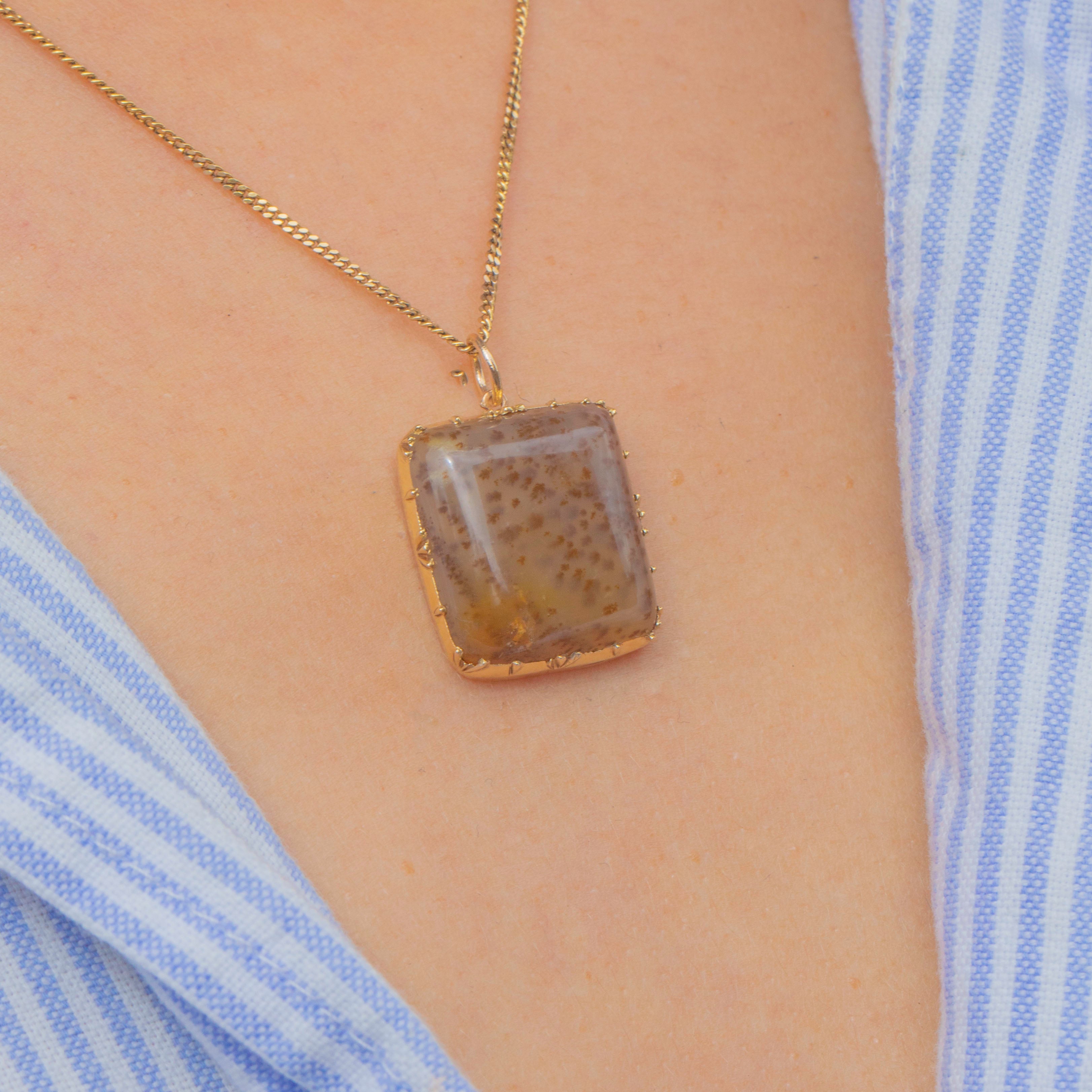 A refined Georgian pendant crafted in 15ct Gold, featuring a striking Dendritic Agate with natural fern-like inclusions. The intricate patterns within the Agate make each piece unique, highlighting the delicate artistry of Georgian jewellery. Elegant and understated, it is a timeless pendant that can be worn alone or layered for a subtle antique statement.