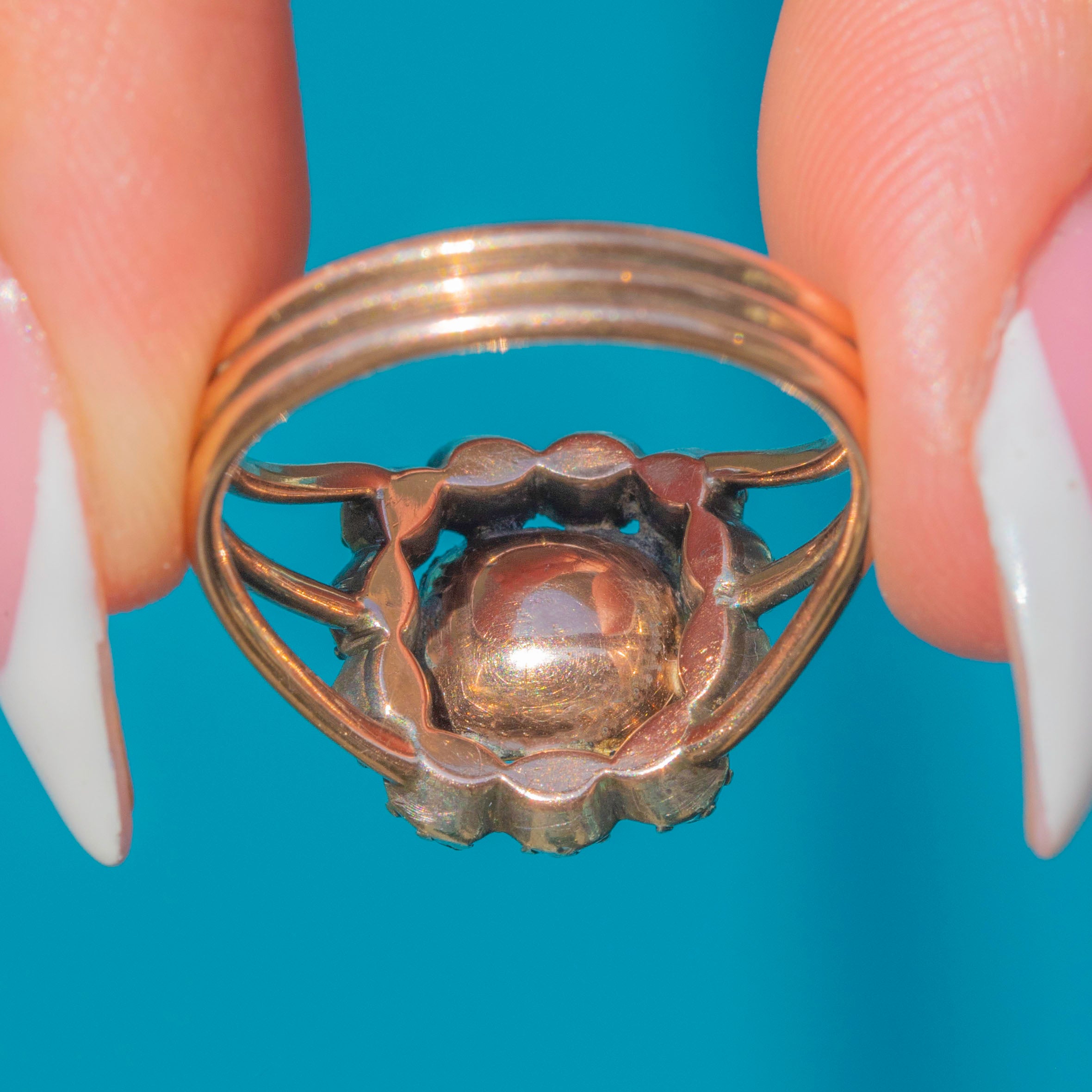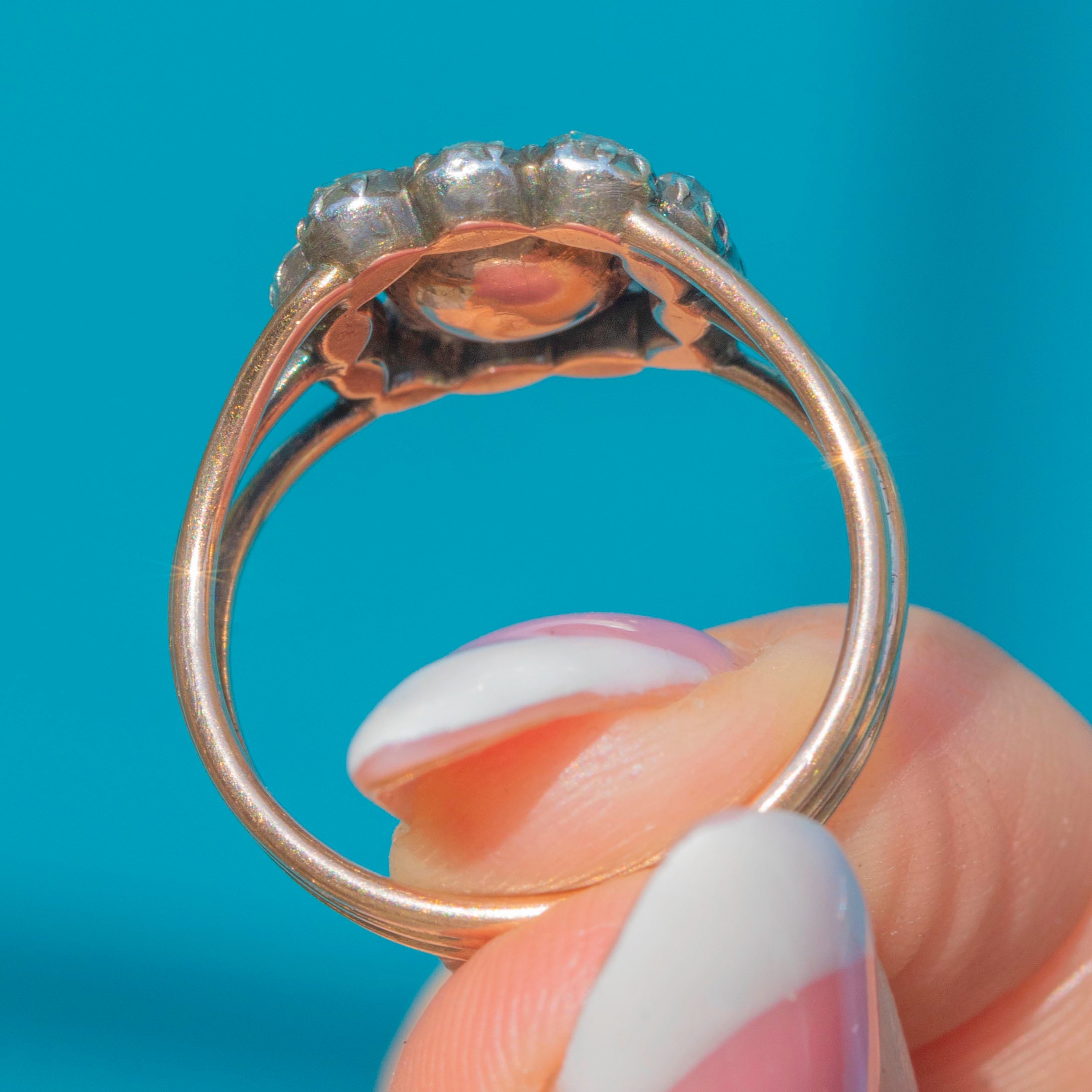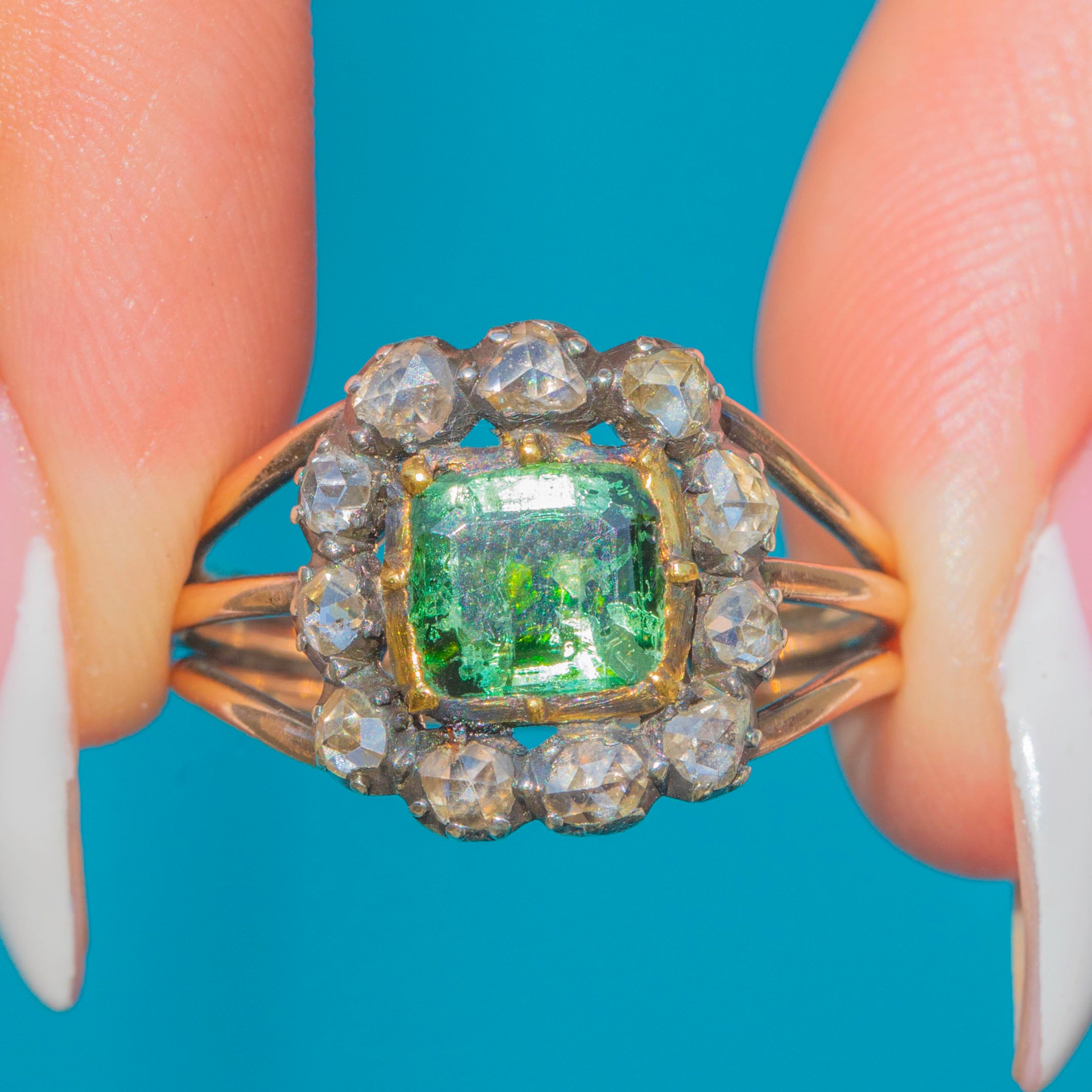 Rare Georgian 15ct Gold Emerald Rose-Cut Diamond Cluster Ring