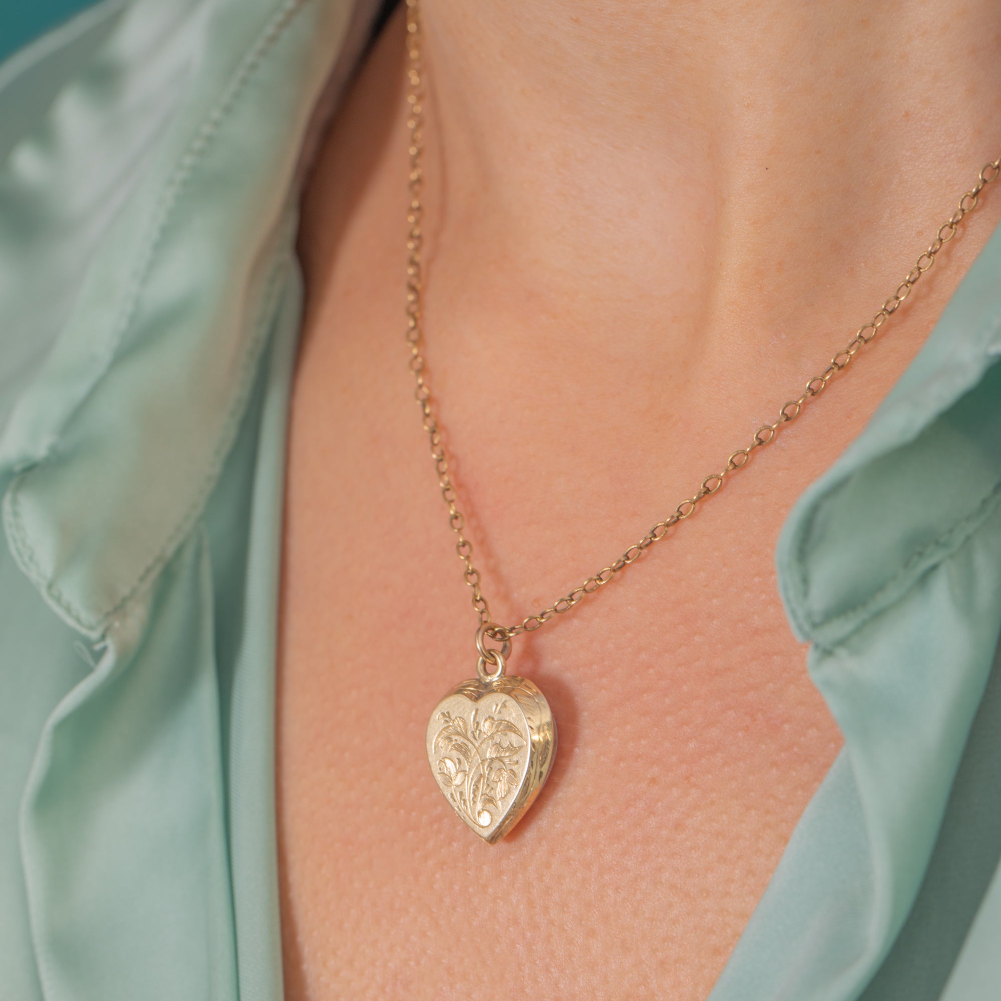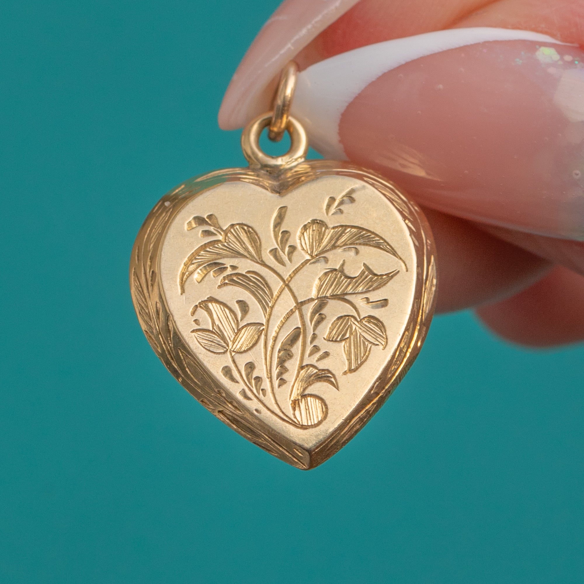This exquisite Georgian 15ct Gold heart locket captures the romance and sentimentality of the mid-19th century. Beautifully hand-engraved with delicate floral motifs, it has all the charm and warmth we adore in early Gold keepsakes.