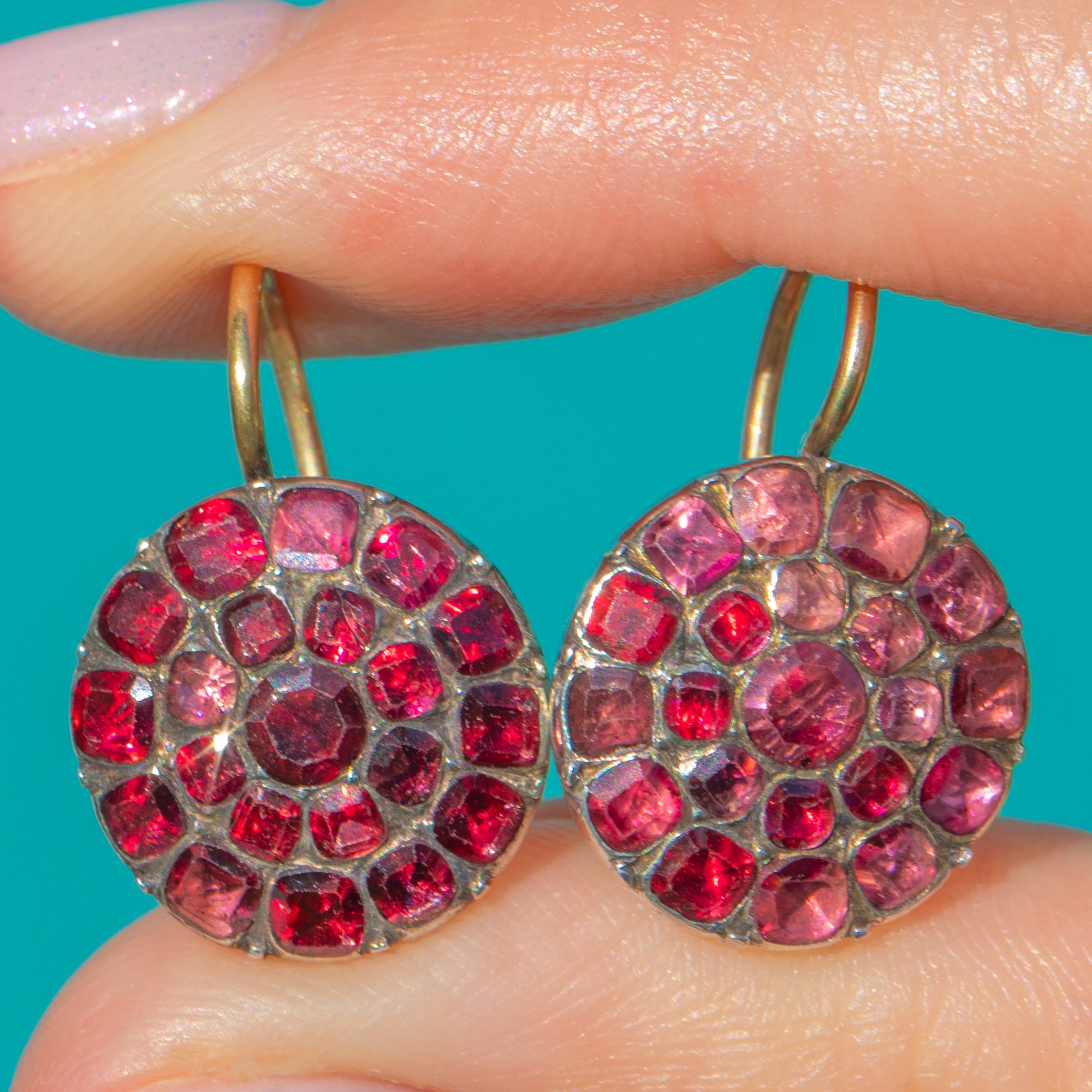 Georgian 18ct Gold Flat-Cut Garnet Cluster Earrings, c.1800