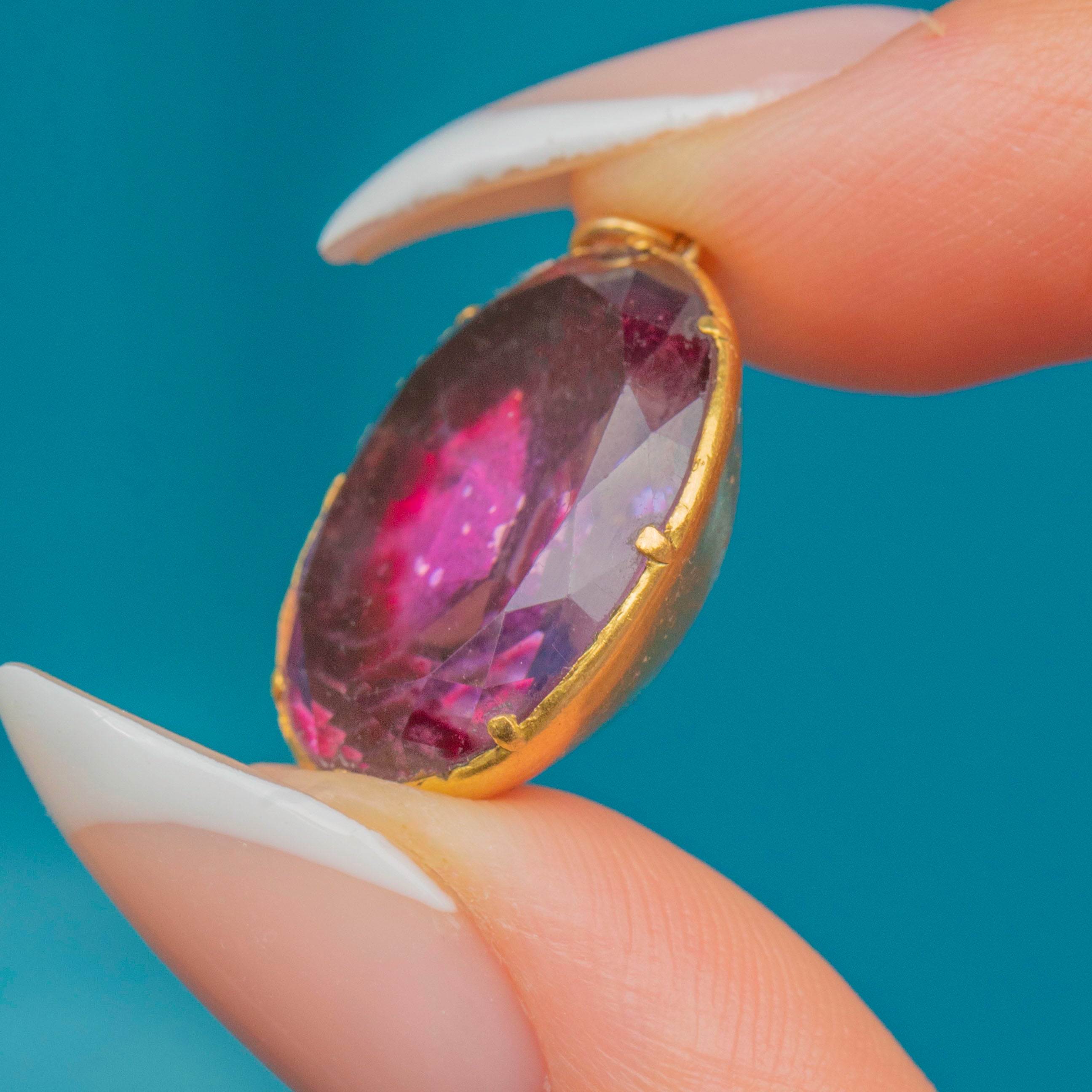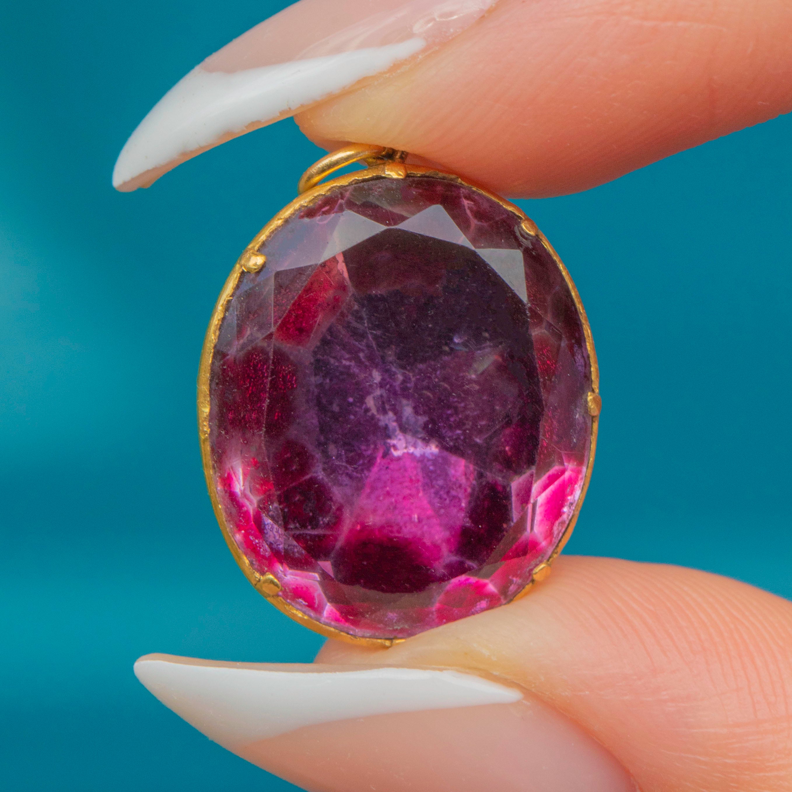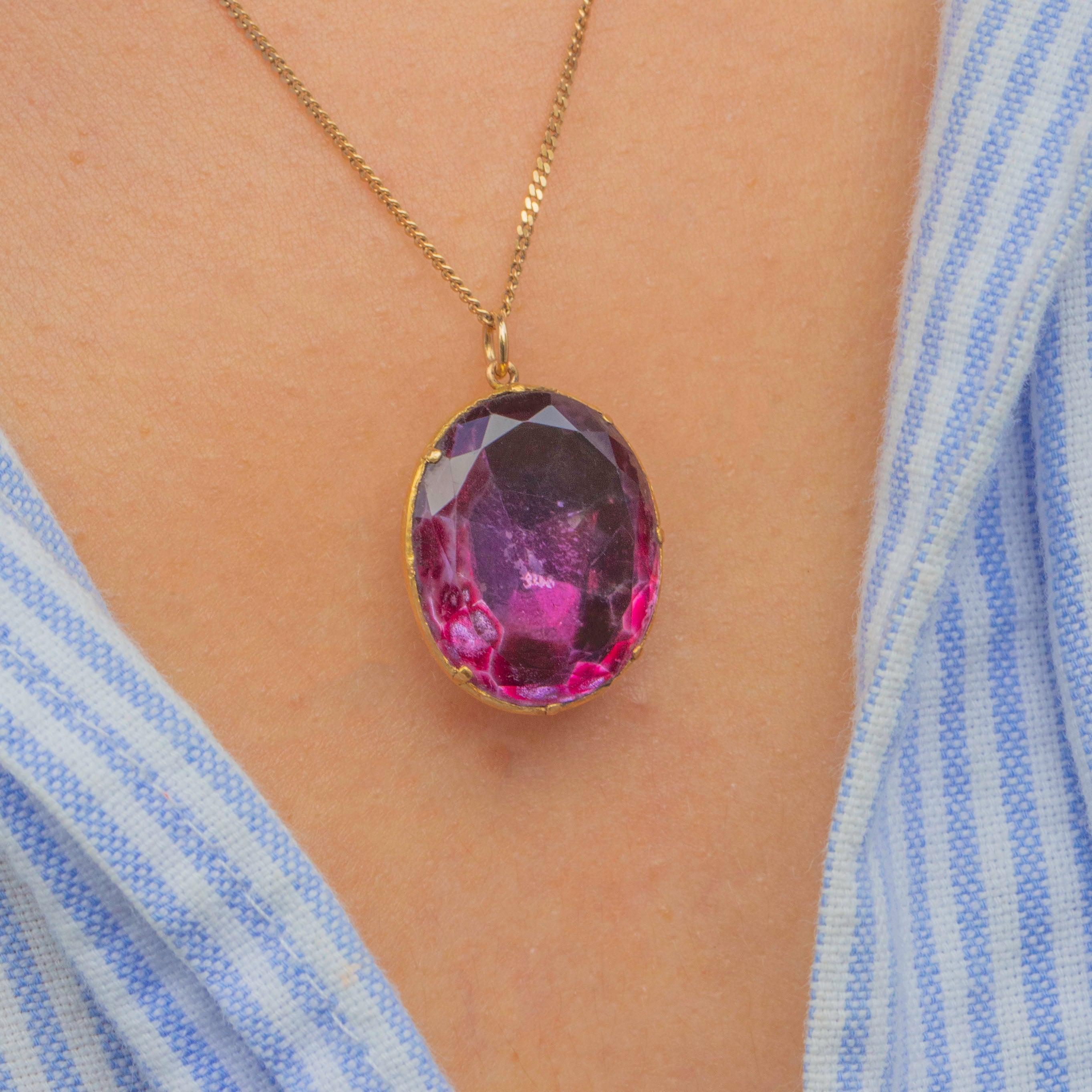 Substantial yet elegant, this late-18th/early-19th-century jewel delivers that unmistakable Georgian colour and craftsmanship, ready to add drama to a simple chain or ribbon.