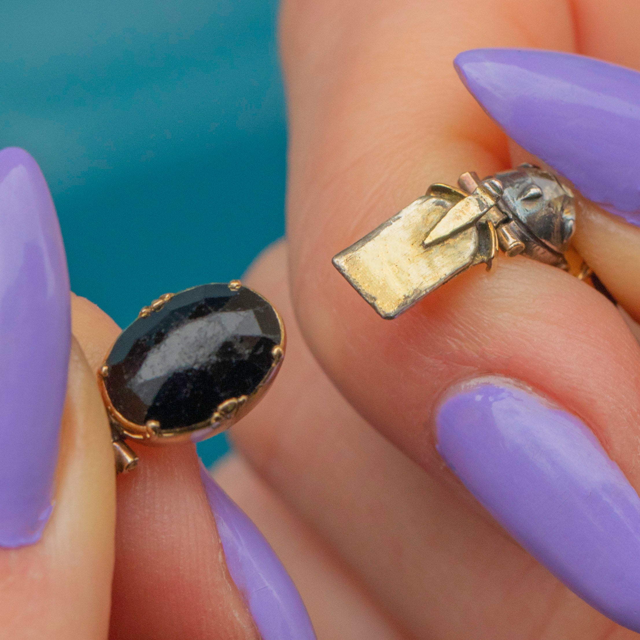 We are obsessed with this Georgian 18ct Gold French Jet bracelet!