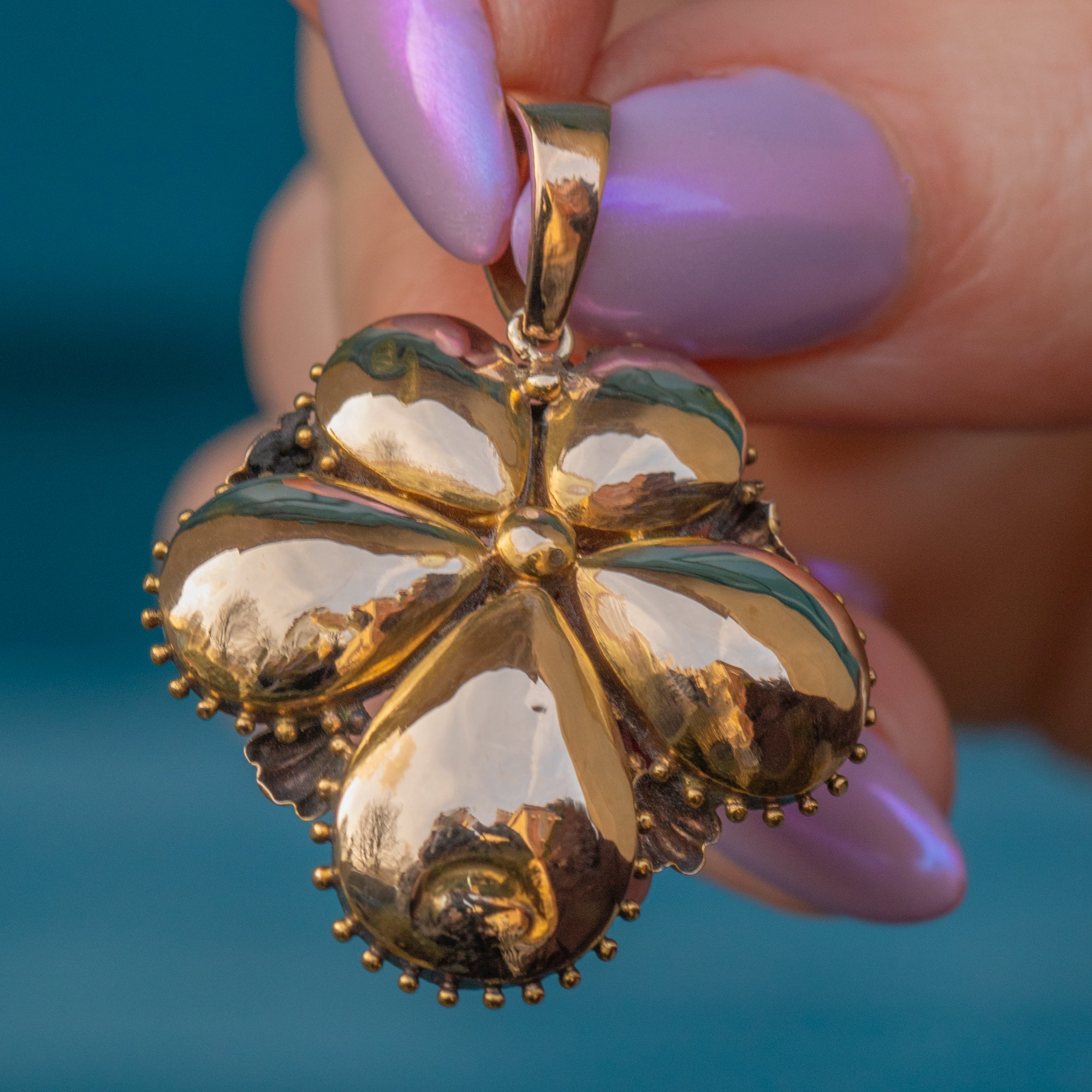 Georgian 18ct Gold Garnet Pansy Pendant, 5.00ct
