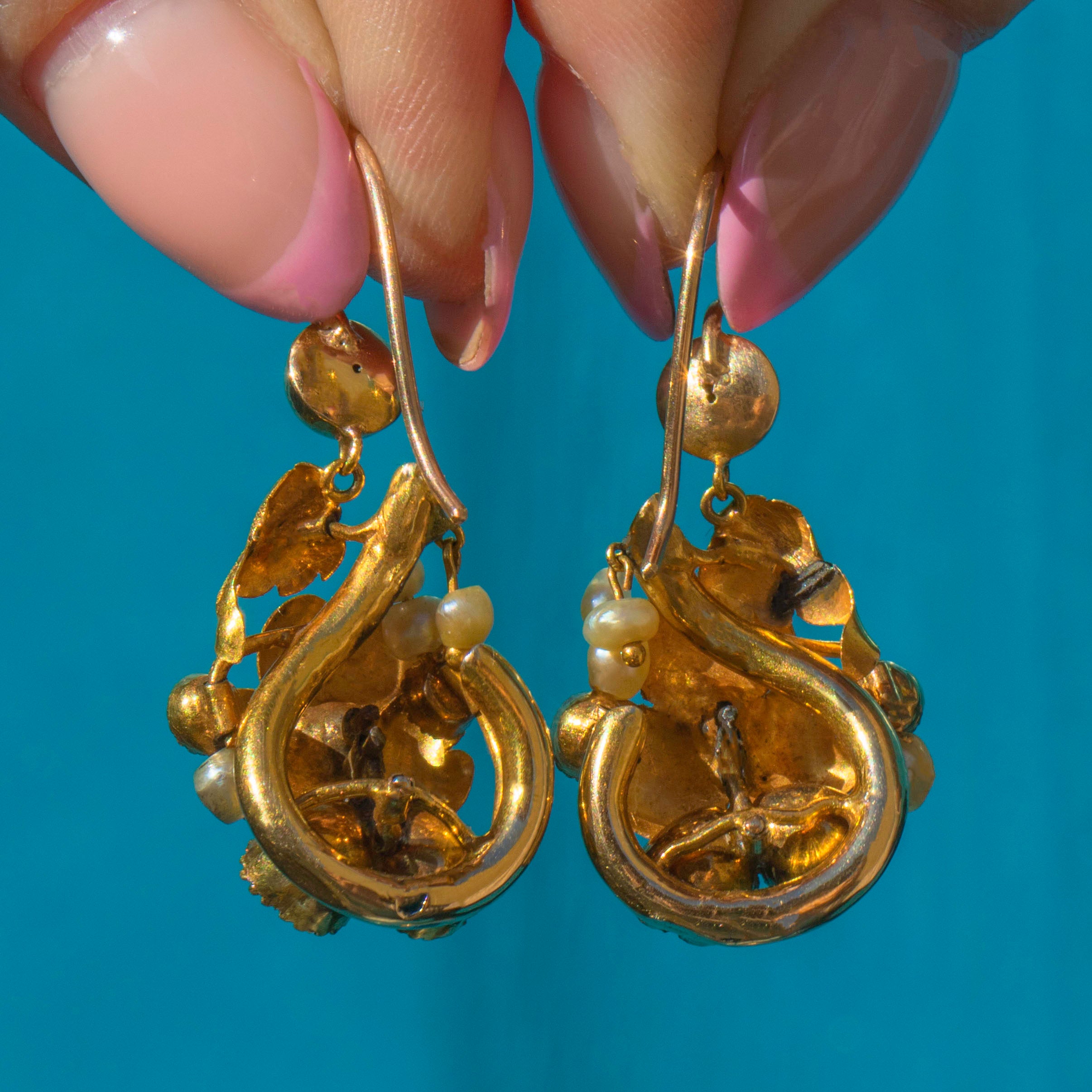 Georgian 18ct Gold Garnet Pearl Pansy Earrings