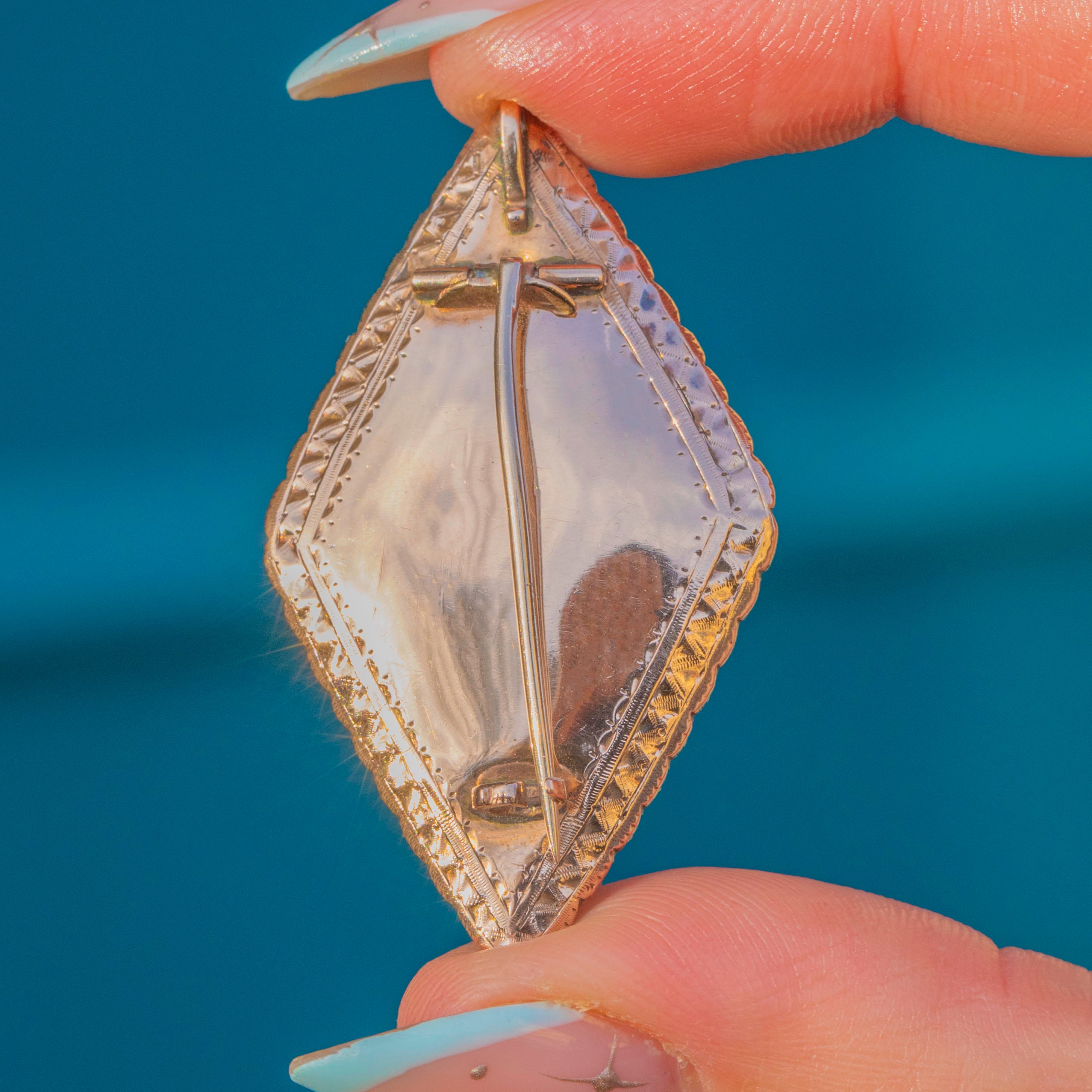 MEASUREMENTS: Brooch is 25mm long x 42.5mm wide.