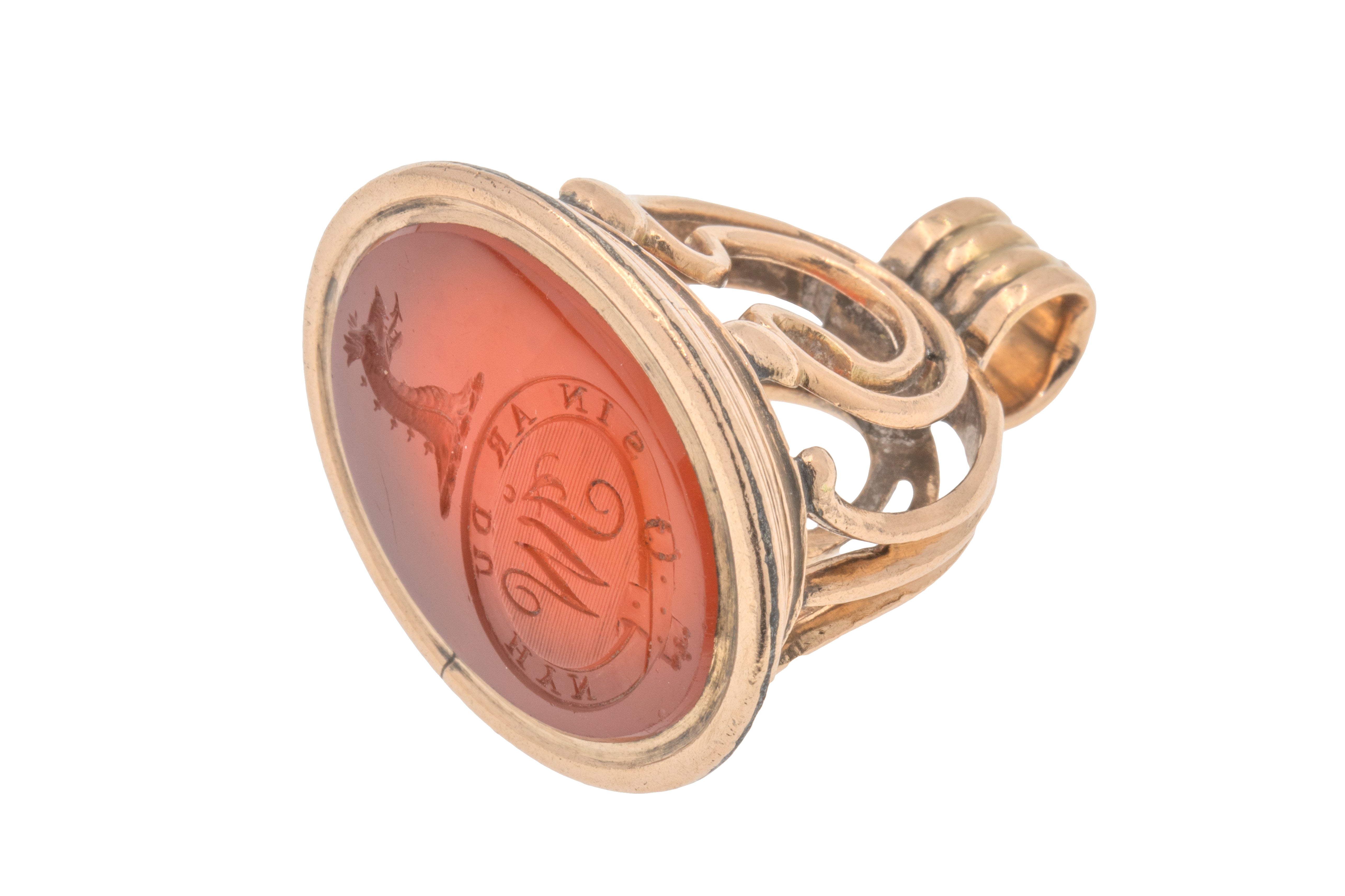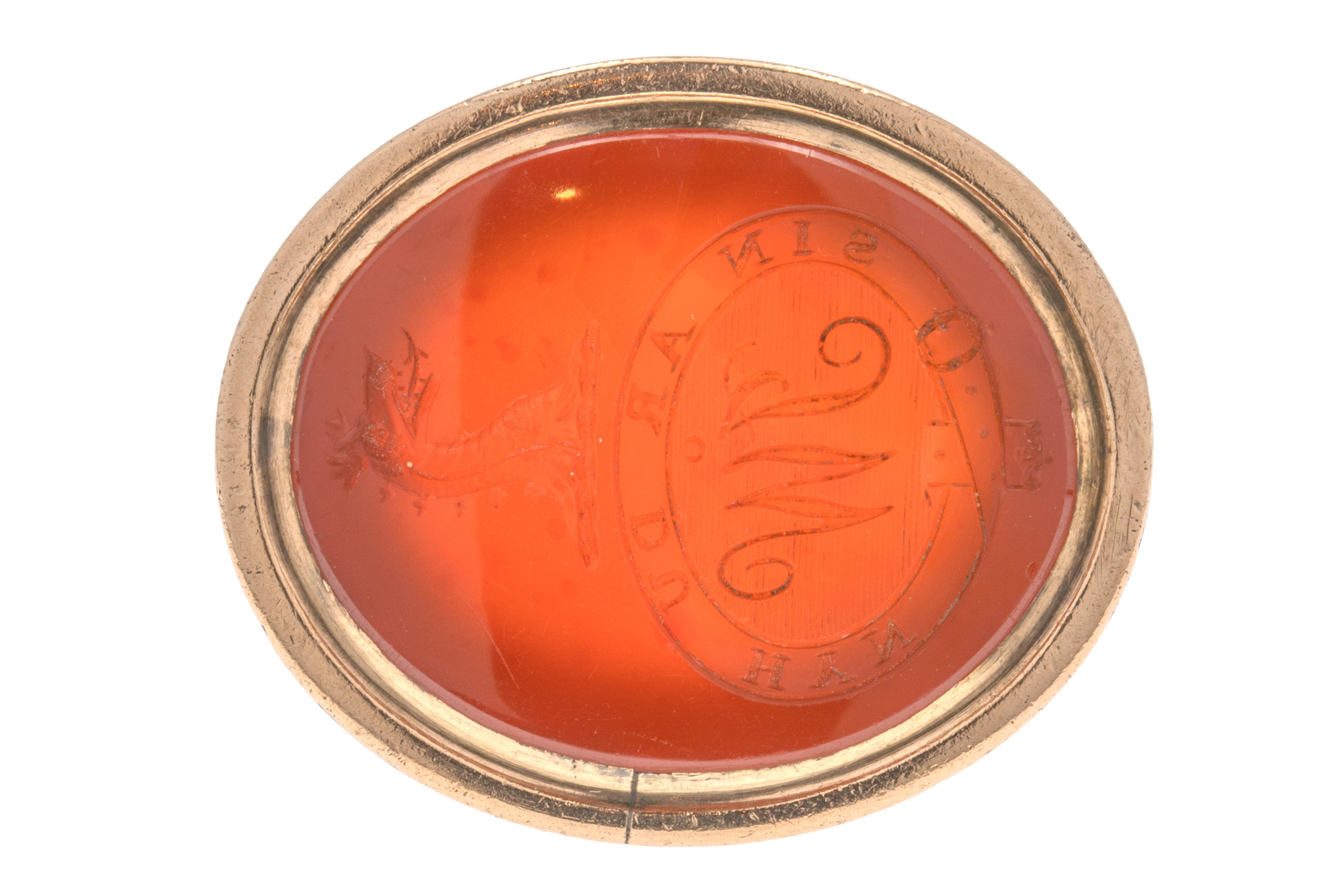 Georgian 9ct Gold Carnelian Intaglio Fob Pendant, 'Sin Ar Du Hyn'
