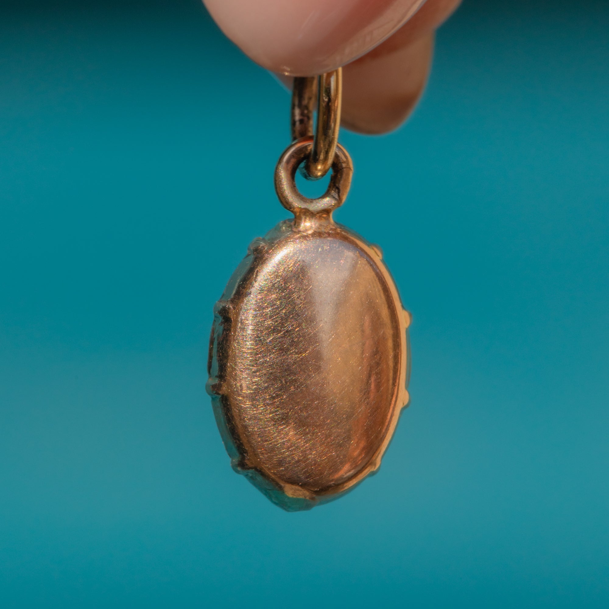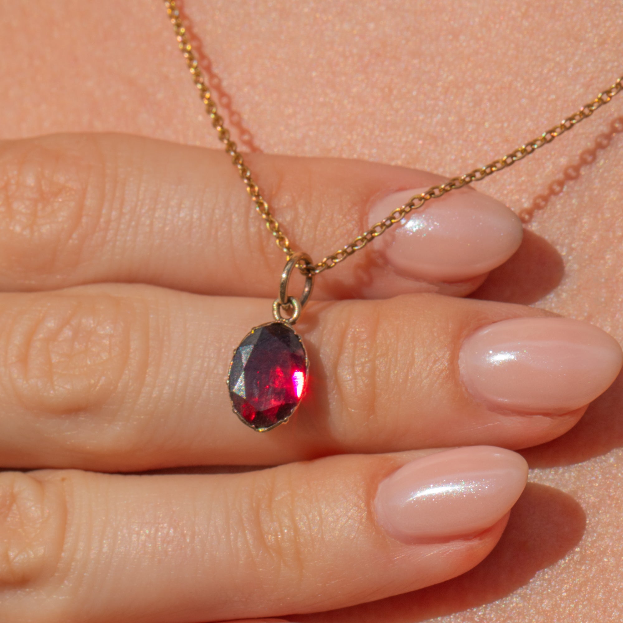 Encased in buttery 9ct Gold, the charm’s vivid colour is accentuated by a traditional Georgian foiled back. Pop her on a vintage chain and wear her close to your heart.