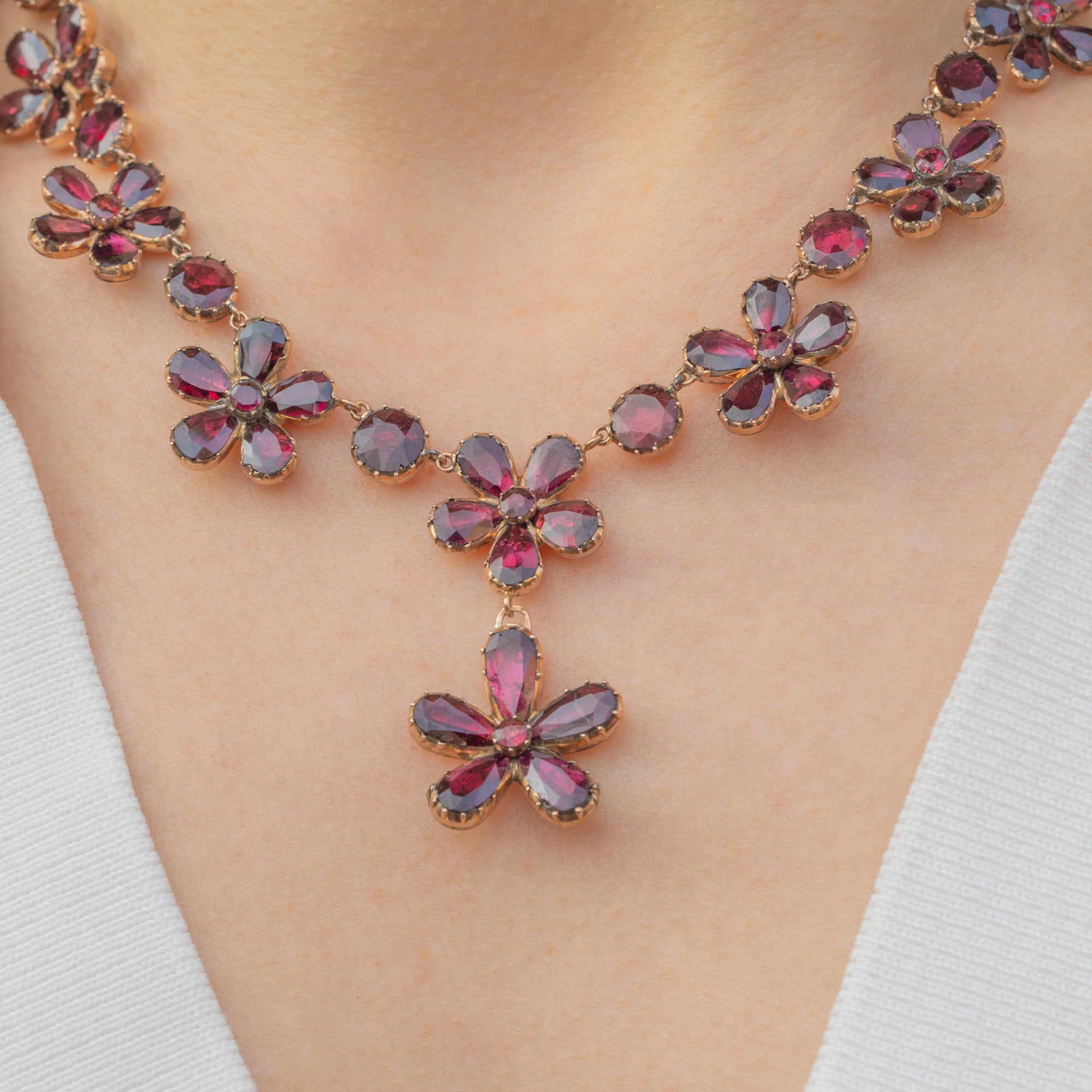 Georgian 9ct Gold Flat-Cut Garnet Pansy Necklace, 19.60ct