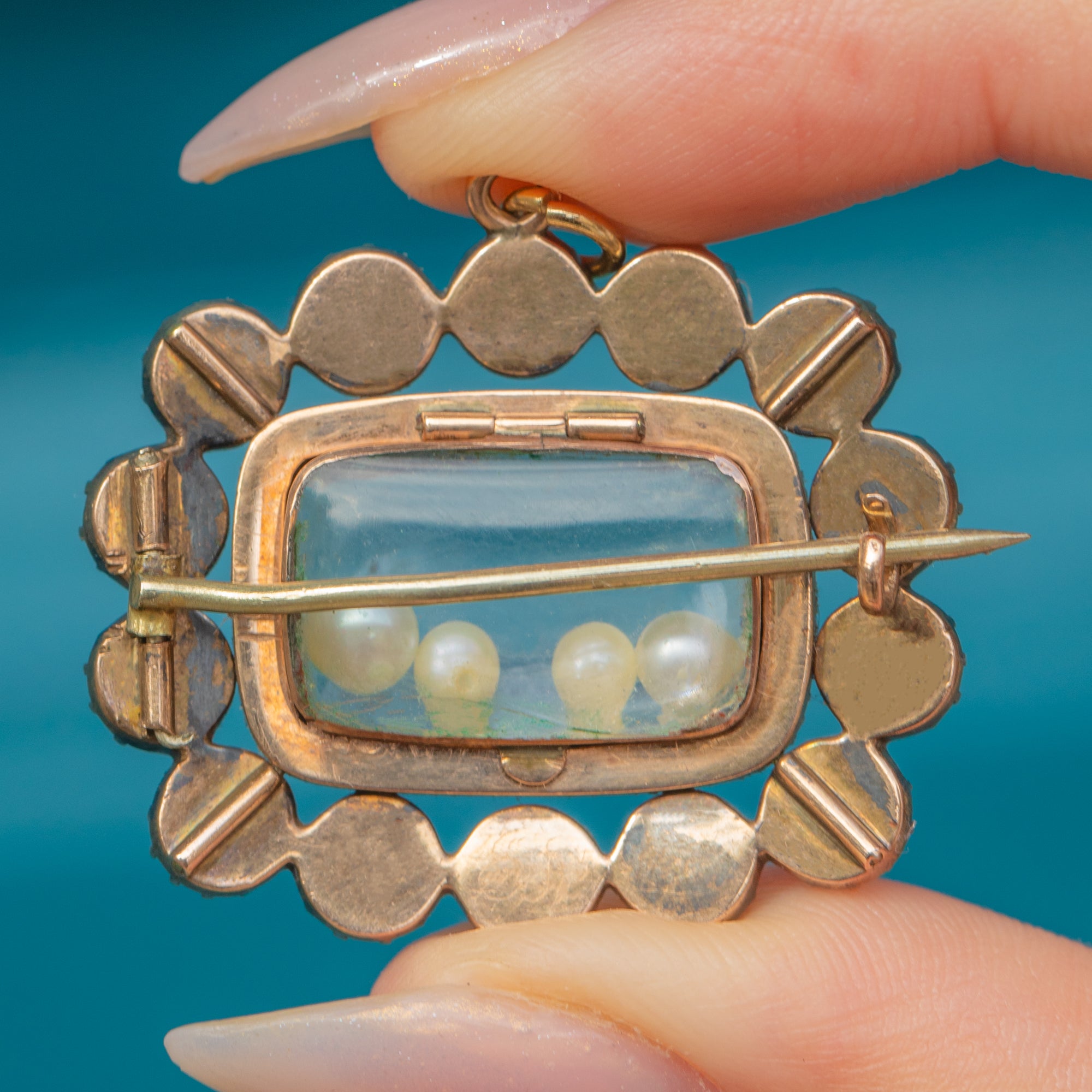 Crafted in 9ct Gold, this pendant also retains its original brooch fittings and locket back, both still fully functional. An exquisite piece of early 19th-century jewellery, it captures the Georgian fascination with sentiment, symbolism, and vibrant colour.