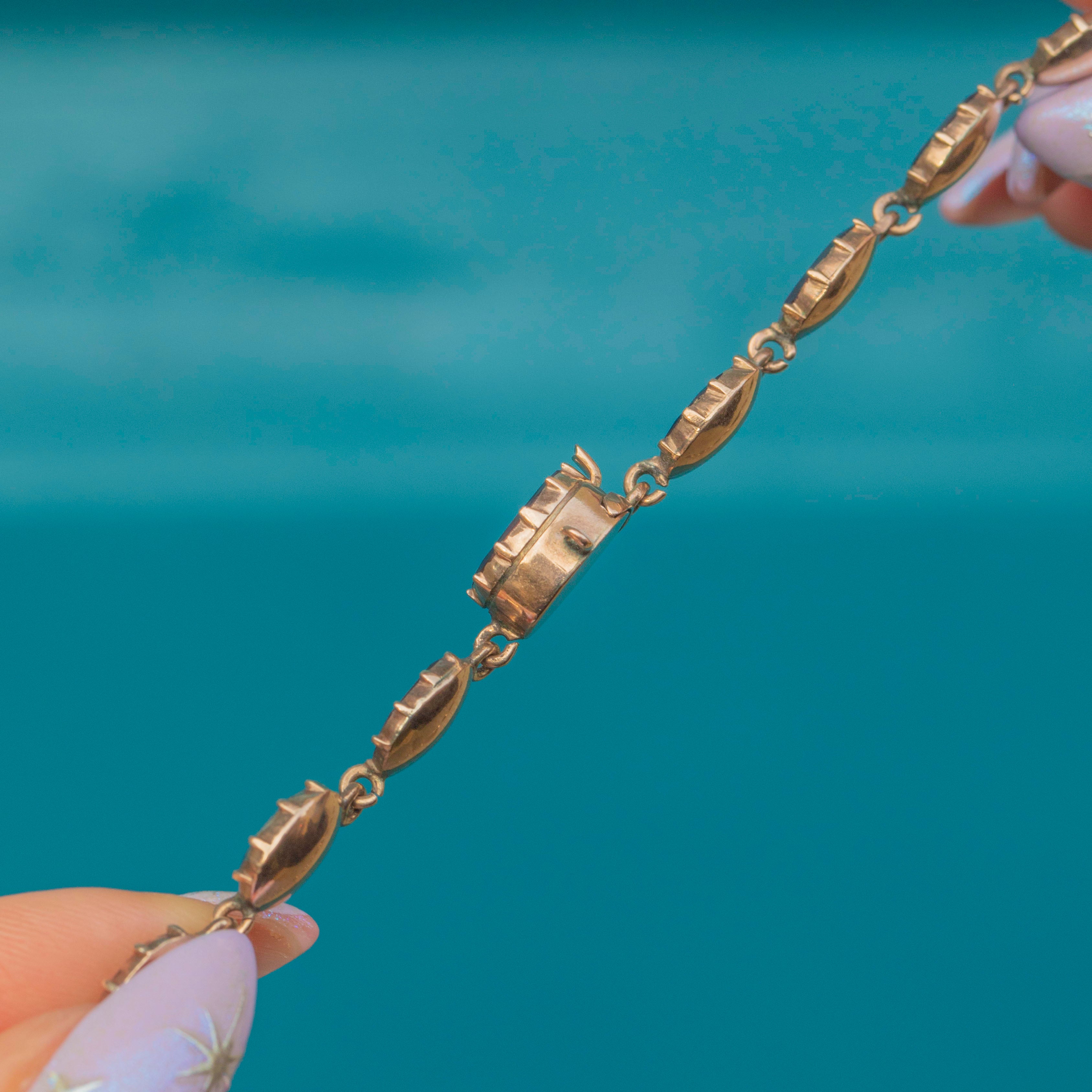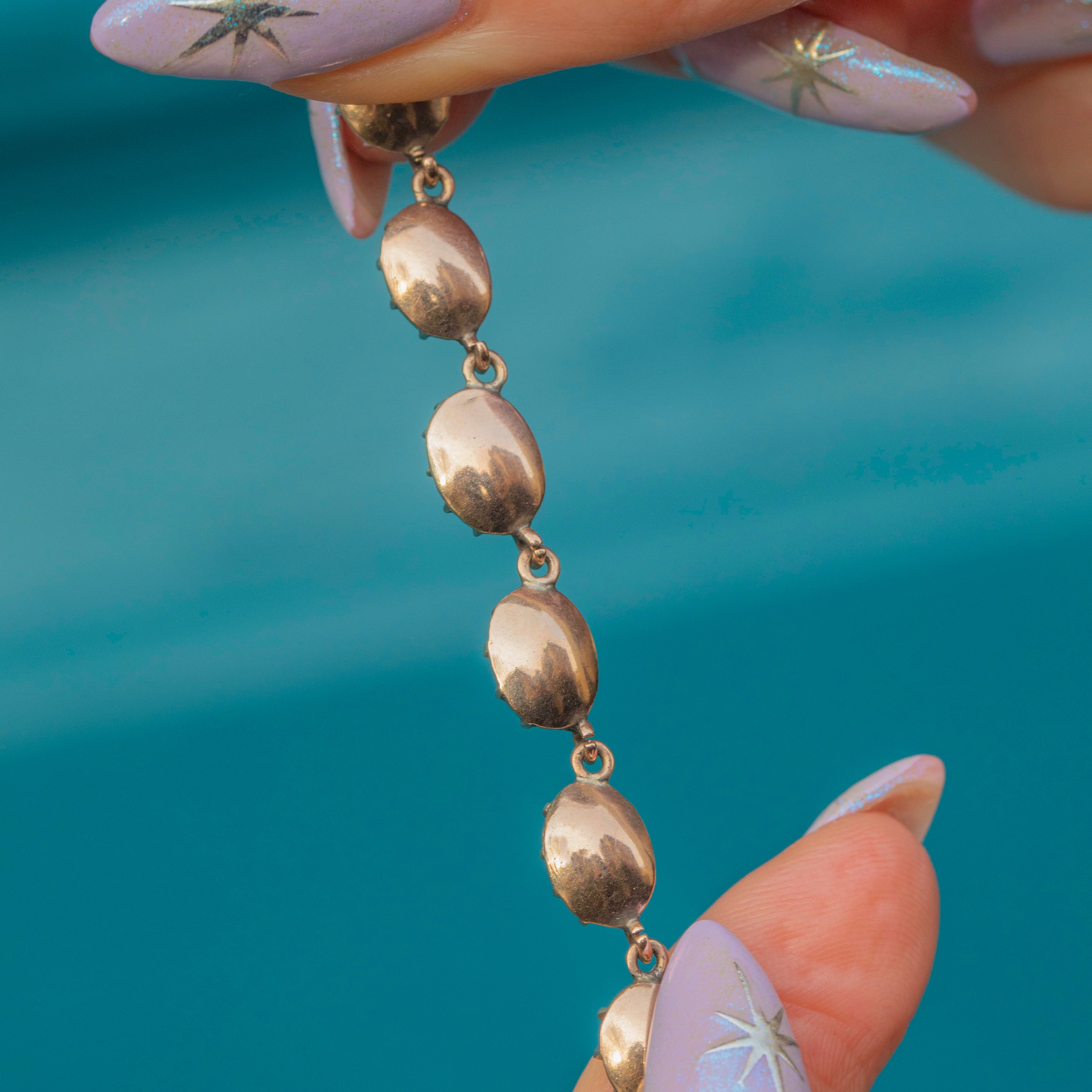 We adore this Georgian 9ct Gold flat-cut Garnet swag necklace! The embodiment of luxury, anyone would feel honoured to have this stunning Gold necklace in their collection, with a total of 50 scarlet flat-cut Garnets boasting 13.00 carats.