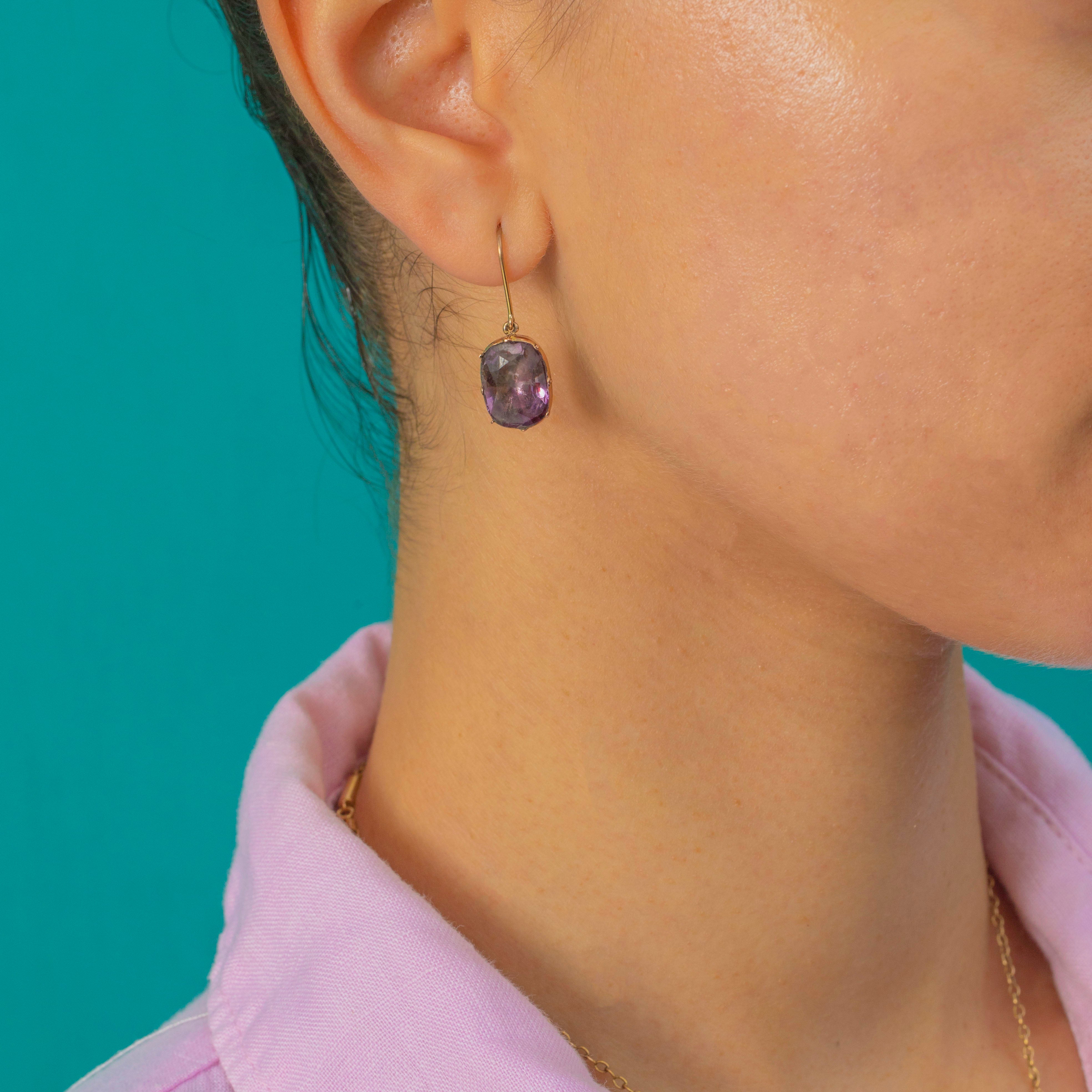 These gorgeous Georgian earrings showcase luminous foiled Amethysts in classic closed-back settings. The stones have that unmistakable soft, glowing purple that the Georgian period is loved for, and they hang beautifully from simple 9ct Gold hooks.