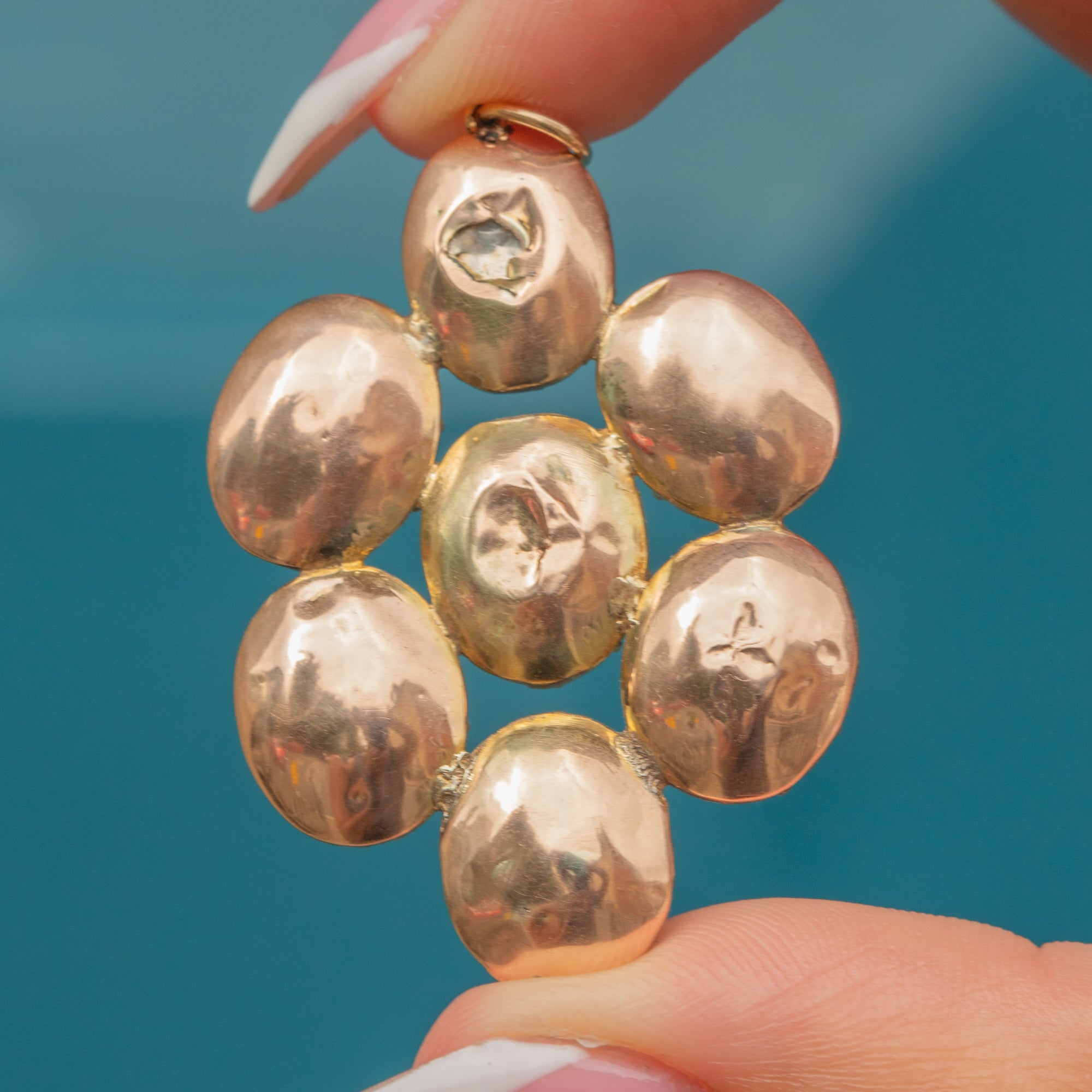 A striking Georgian pendant crafted in warm 9ct Gold, set with rich, foiled Garnet pastes that glow with depth and warmth.