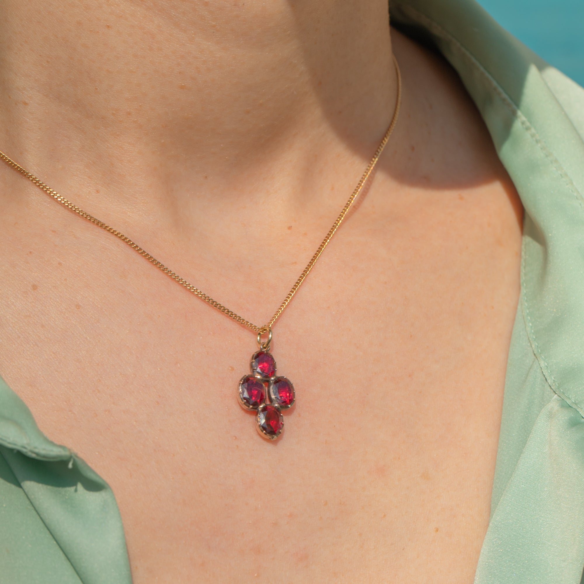 VERY GOOD. This exquisite Georgian 9ct Gold Garnet charm is in very good condition. Each Garnet is expertly faceted and securely set. The Garnets do have some minor surface wear to note, but given their age, they're in fab condition. The back of the pendant is smooth so can be worn comfortably!
