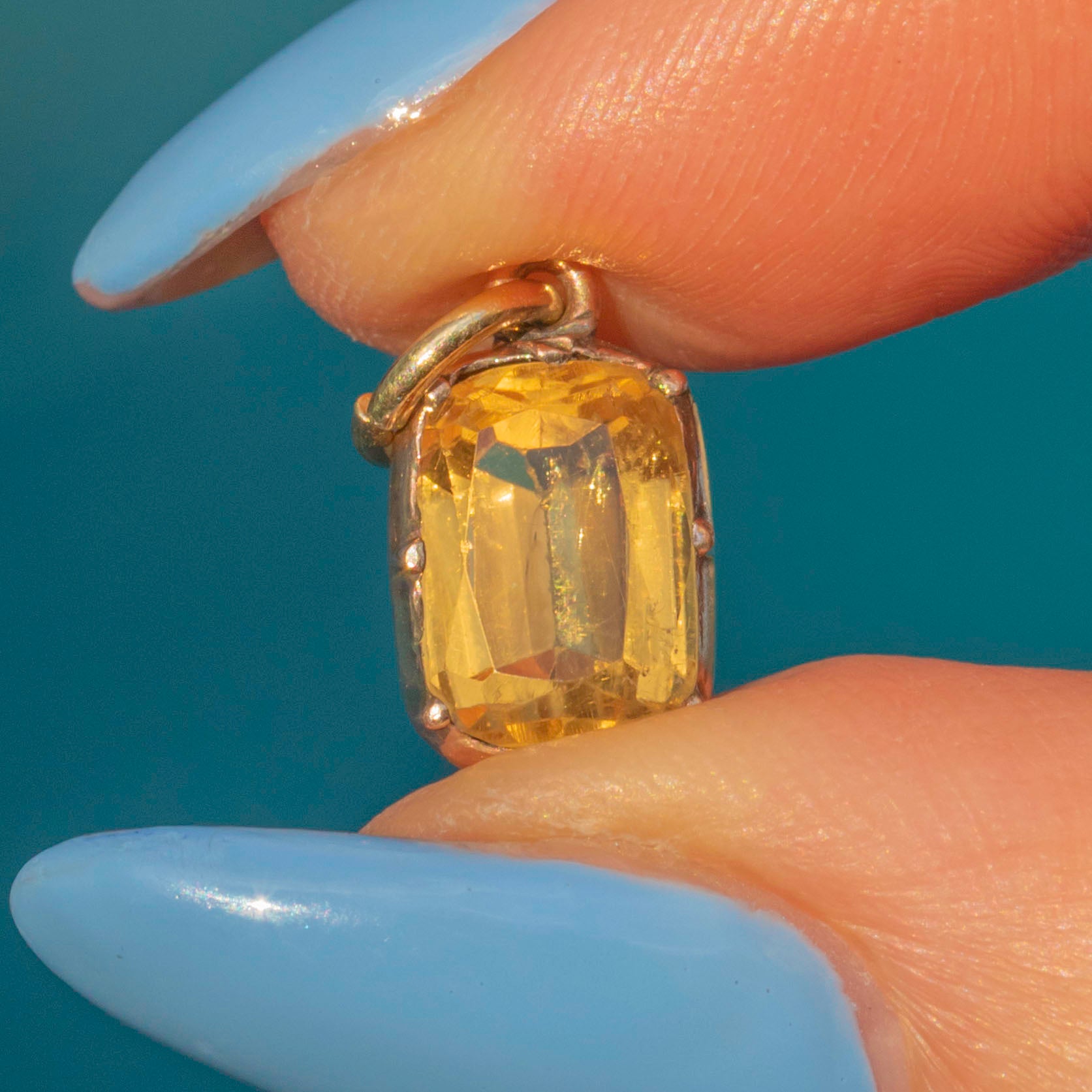 This Georgian 9ct Gold golden Topaz charm certainly is a sweet beauty to behold! Her delicate hue glistens beautifully with a touch of warmth. Enveloped in a rich, warm 9ct Gold which adds to her allure, this Topaz charm will make a fine accompaniment to a fine Gold chain. Wear her alone, or styled with other charms, her elegant beauty is suited to solitude or sharing!