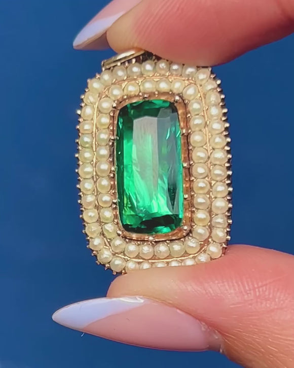 Georgian 9ct Gold Green Paste Pearl Cluster Pendant