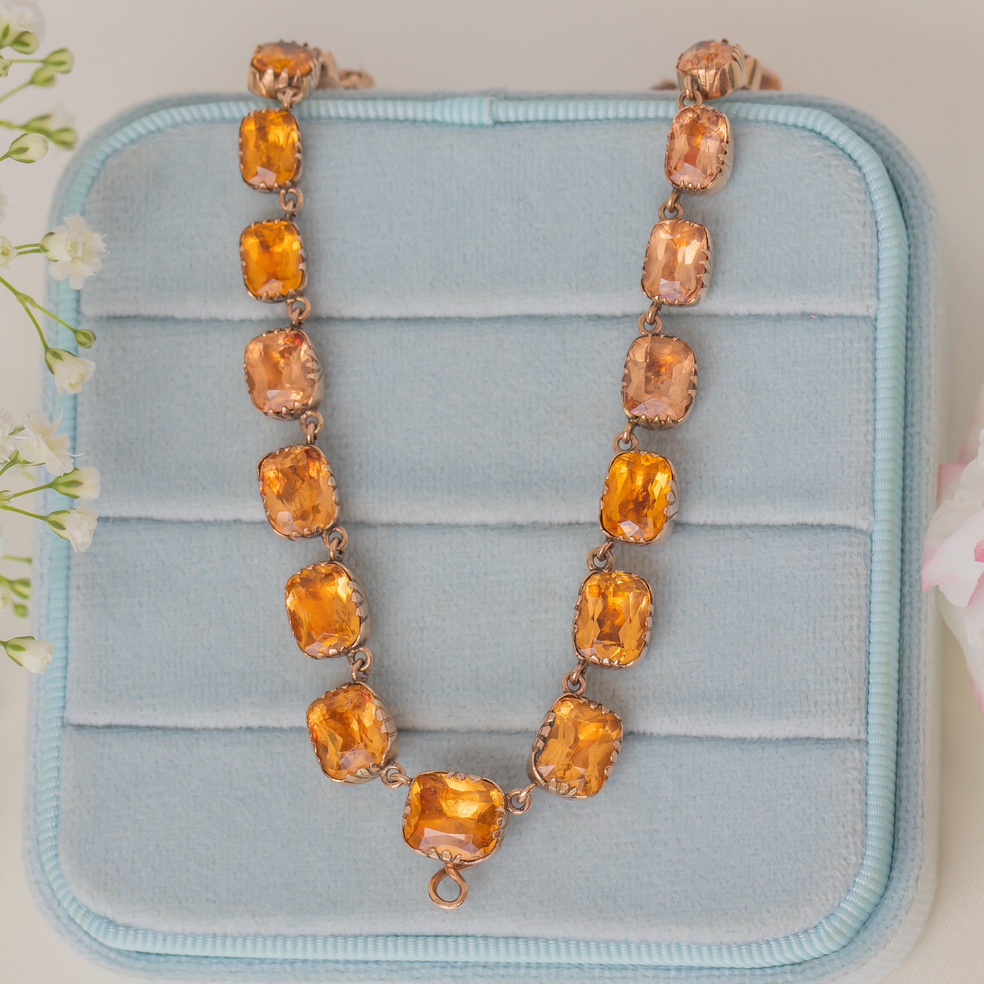 Georgian 9ct Gold Imperial Topaz Paste Rivière Necklace