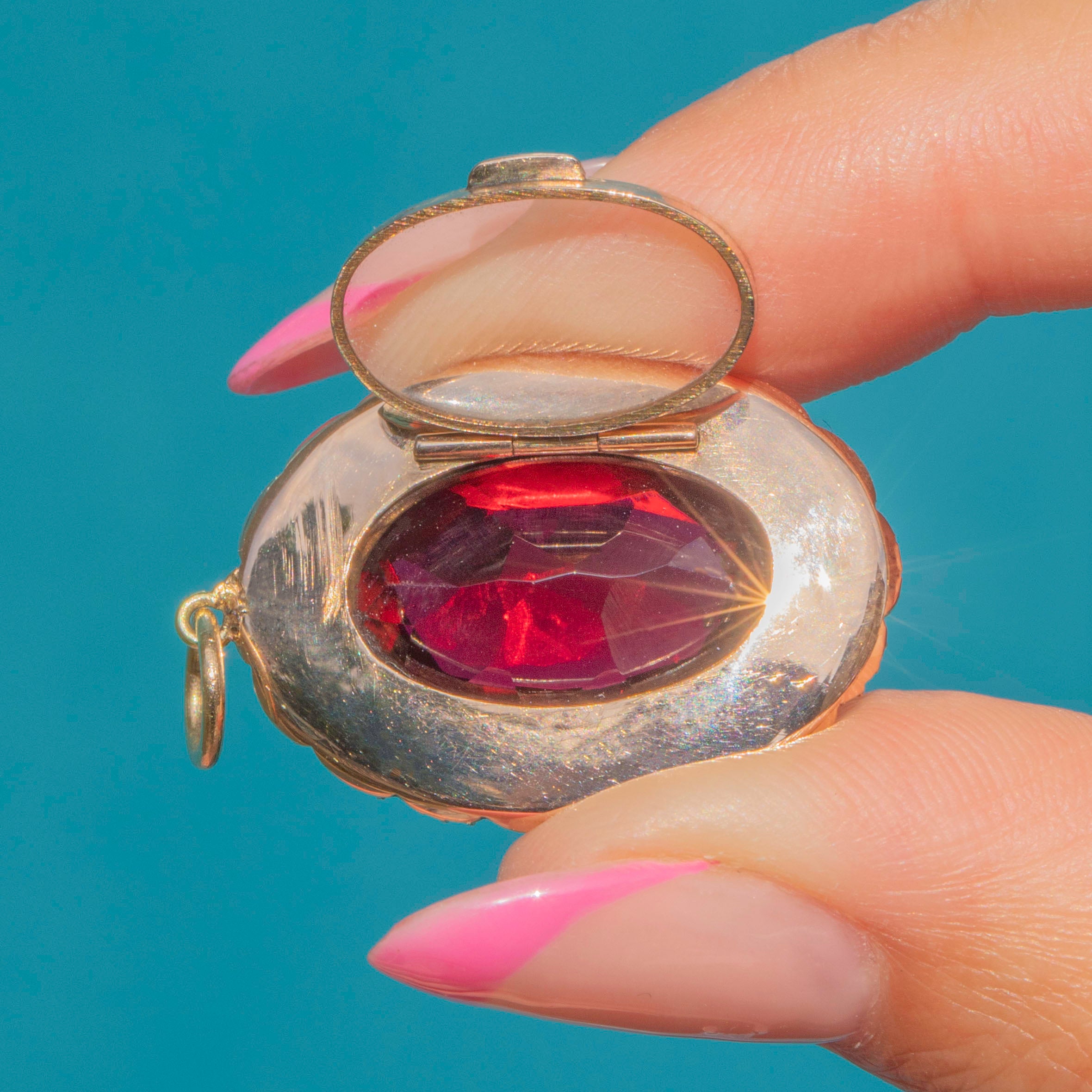 EXCELLENT: Having stood the test of time, this Georgian 9ct Gold red Paste & Pearl cluster pendant is in excellent condition, which is no mean feat when considering its impressive age! The Paste has a crisp set of facets and an eye-catching scarlet hue, and the Pearls are pristine, each held securely within their settings. Incredibly, the locket door is still functional, making this a rare and highly desirable piece of Georgian jewellery!