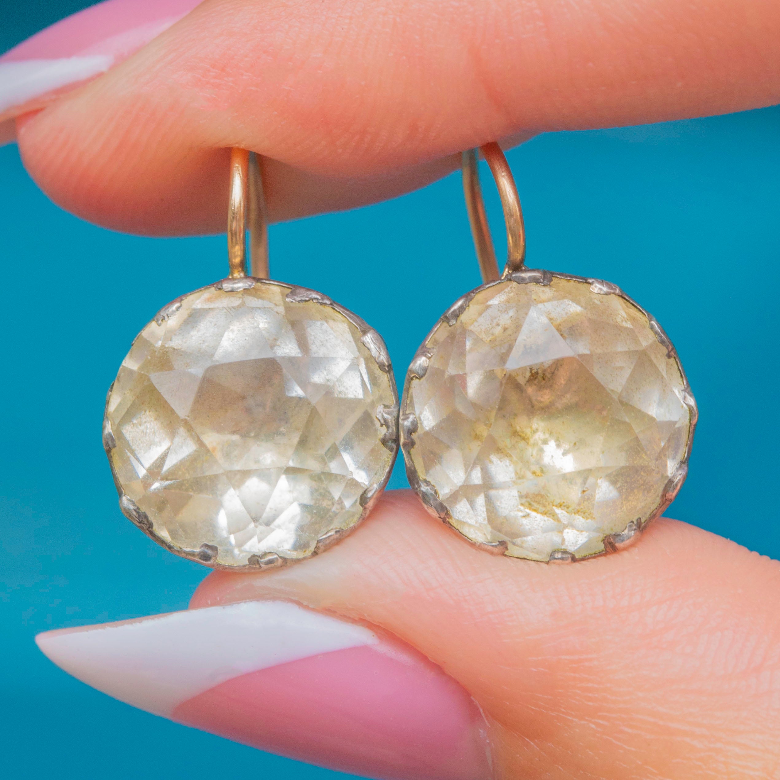 We are so pleased to introduce you to these magnificent Georgian Rock Crystal earrings, in all their shimmering antique glory!