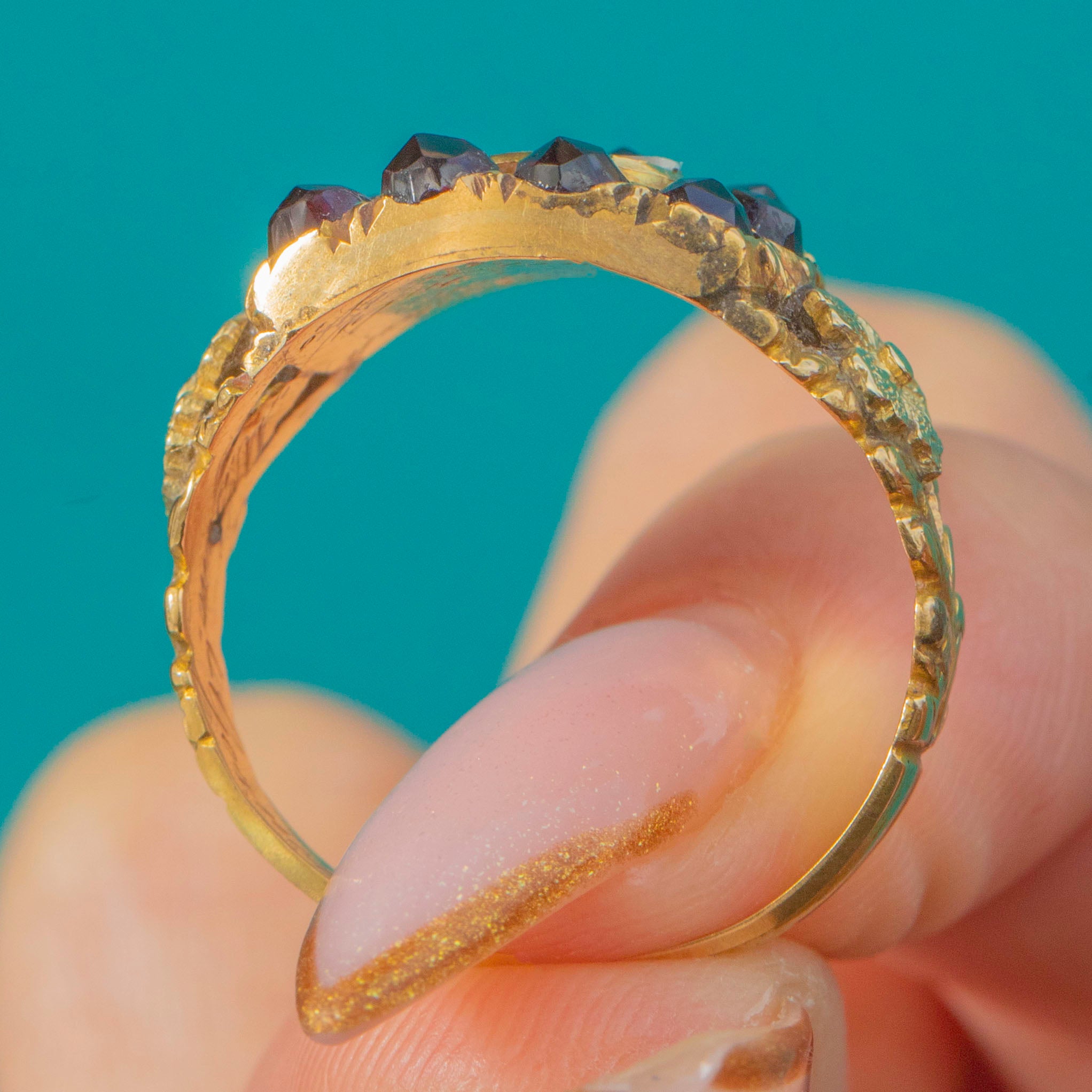 Georgian Garnet Mourning Ring (Double Obituary) in 18ct Gold c.1827