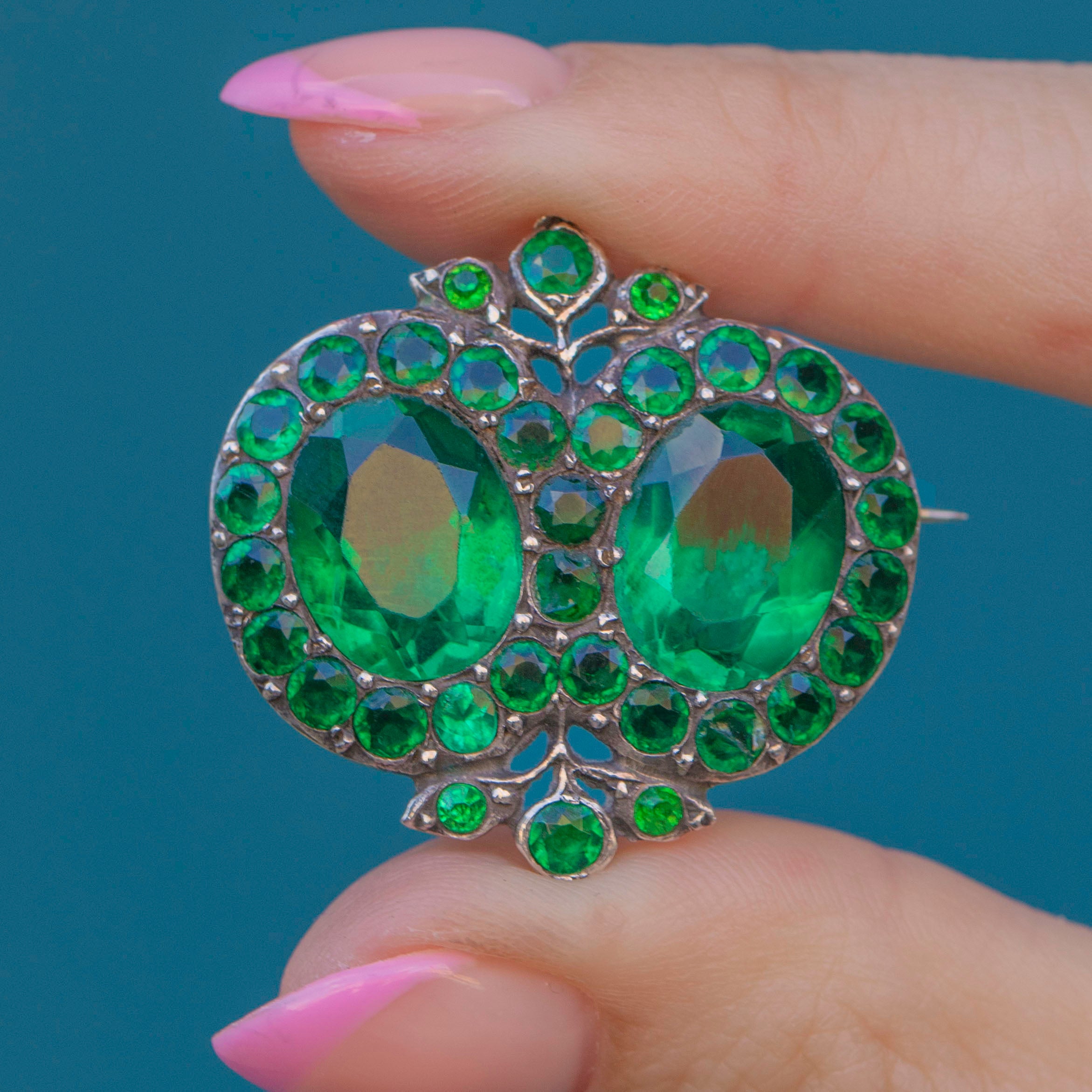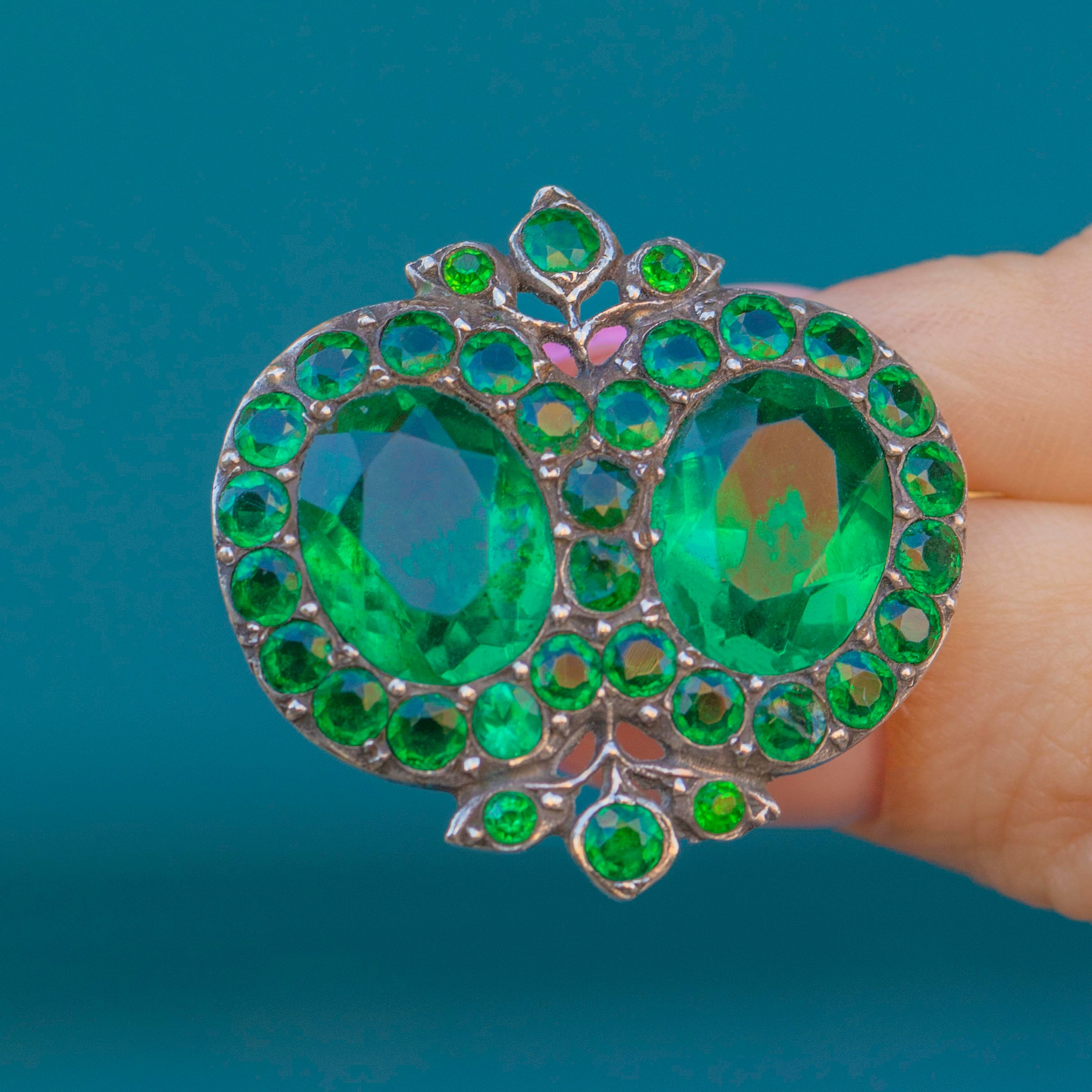 This superb piece of Georgian jewellery has been crafted from Sterling Silver to create comfortable dished settings for the Paste to rest in, which have notably crisp facets that glisten beneath the light! The Paste is a rich forest green that has retained all of its original intensity - who'd have thought that a Georgian treasure would be just as desirable all these years later!
