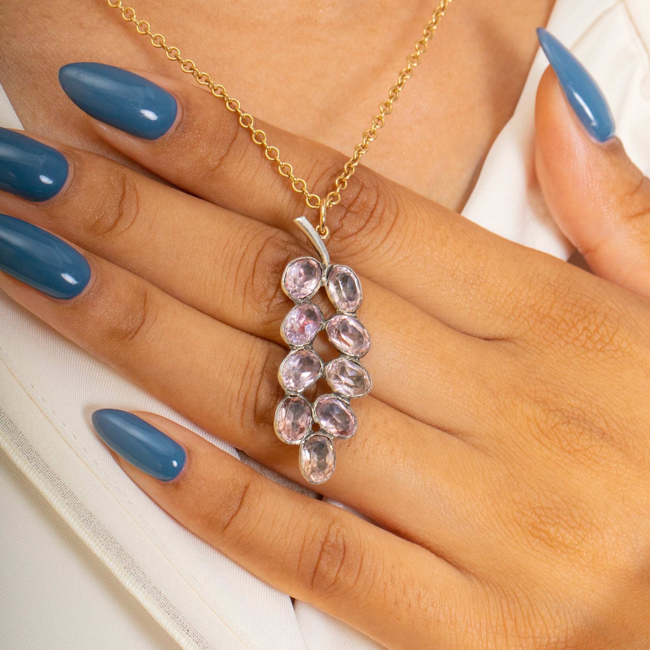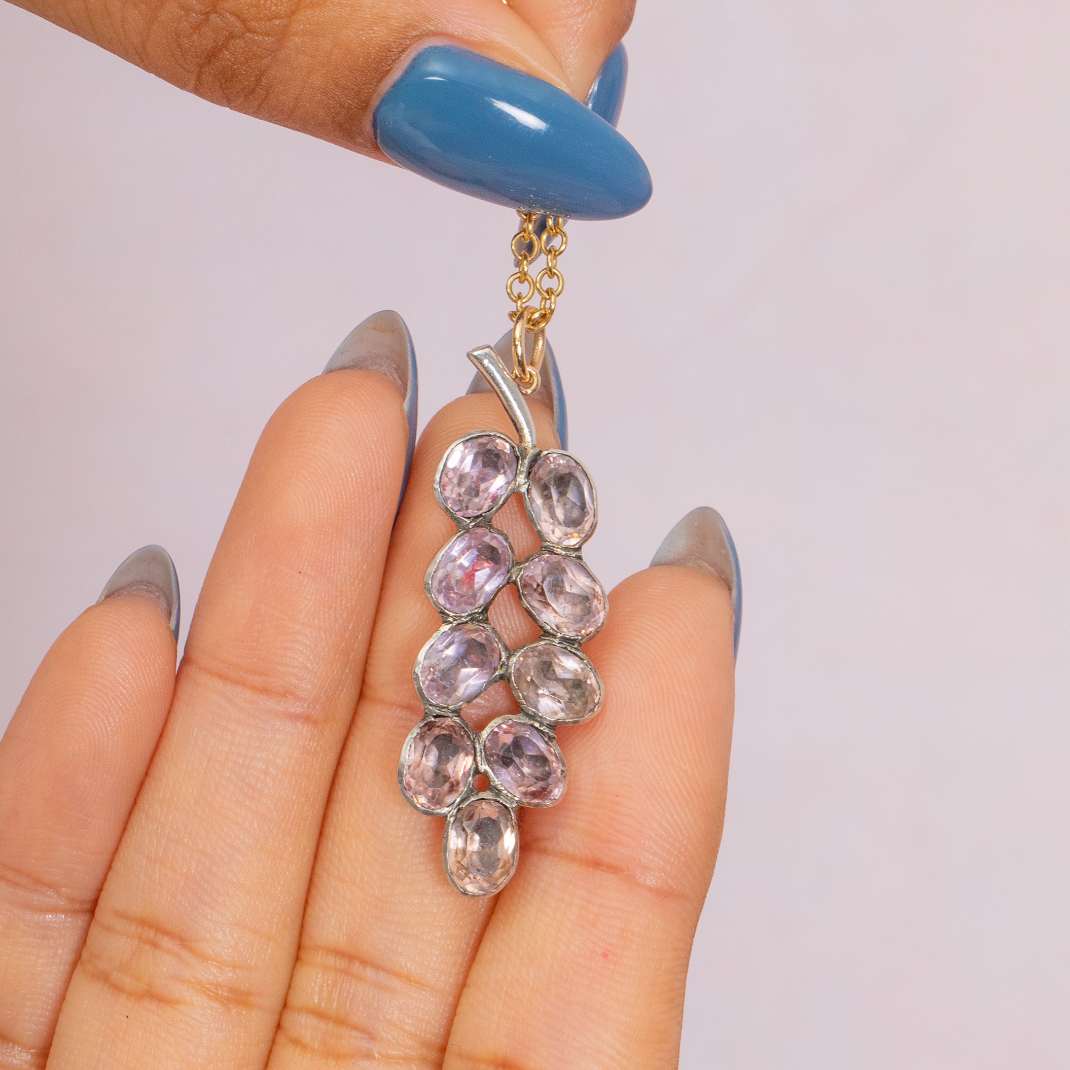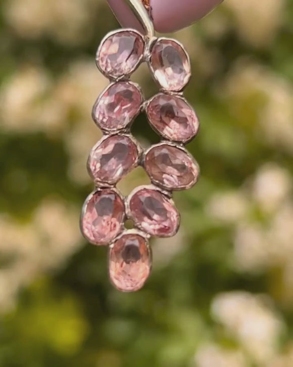 This Georgian pink foiled Paste leaf pendant exudes elegance and sophistication. Crafted from Sterling Silver, this pendant takes the shape of a leaf and boasts mesmerising pink foiled Paste gemstone gleaming with a soft, ethereal hue.