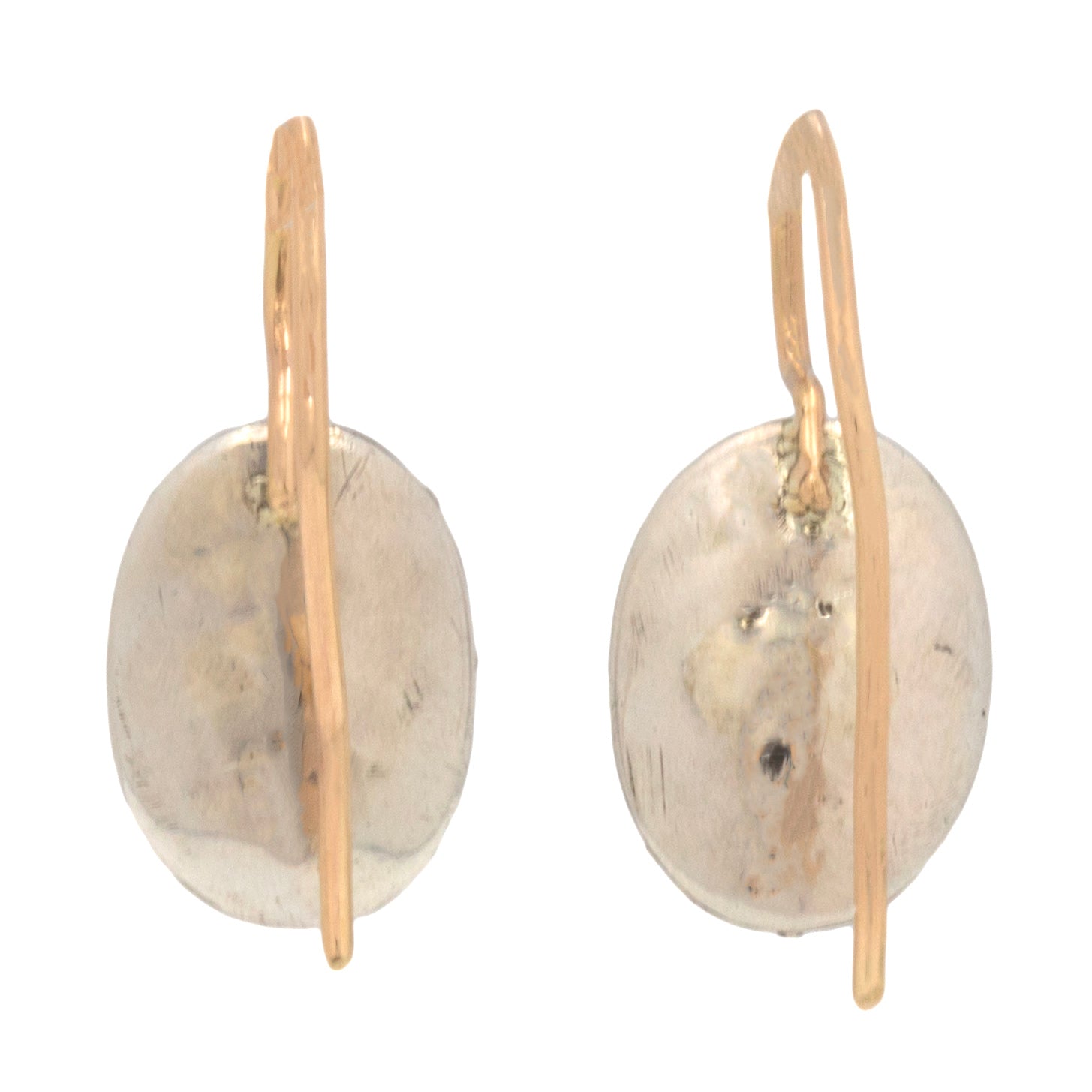 Hugged tightly by Sterling Silver pie crust settings which have accrued an admirable patina adding a dramatic finish. These antique oval earrings are suspended from 9ct Gold hooks, falling perfectly below the lobe.
