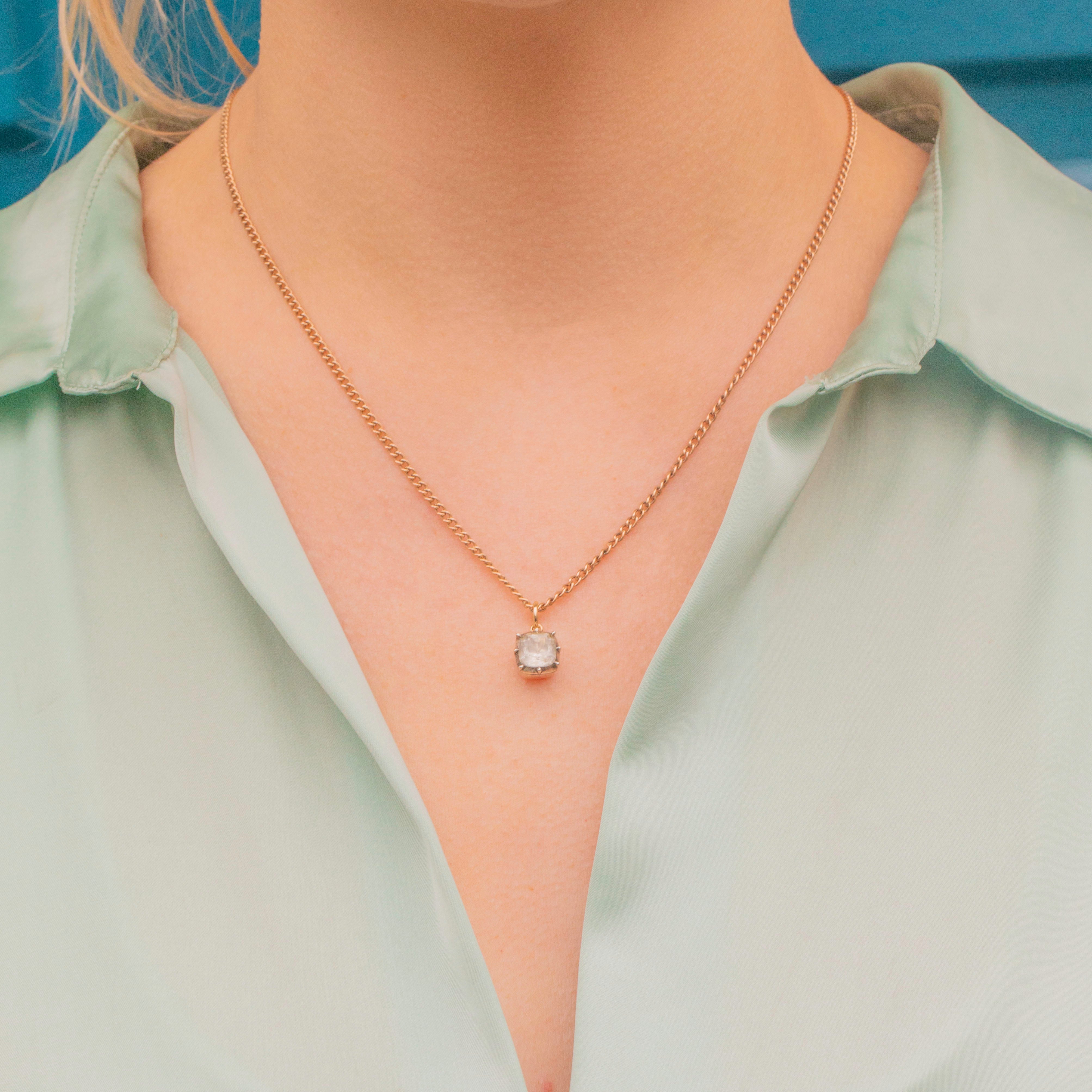 Her shimmering Paste is set in a Silver pie crust setting, with a gorgeous patina that she has accrued over the years - atop a 9ct Gold backing and jump ring, just affix her to an antique Gold chain and show her off to the world.