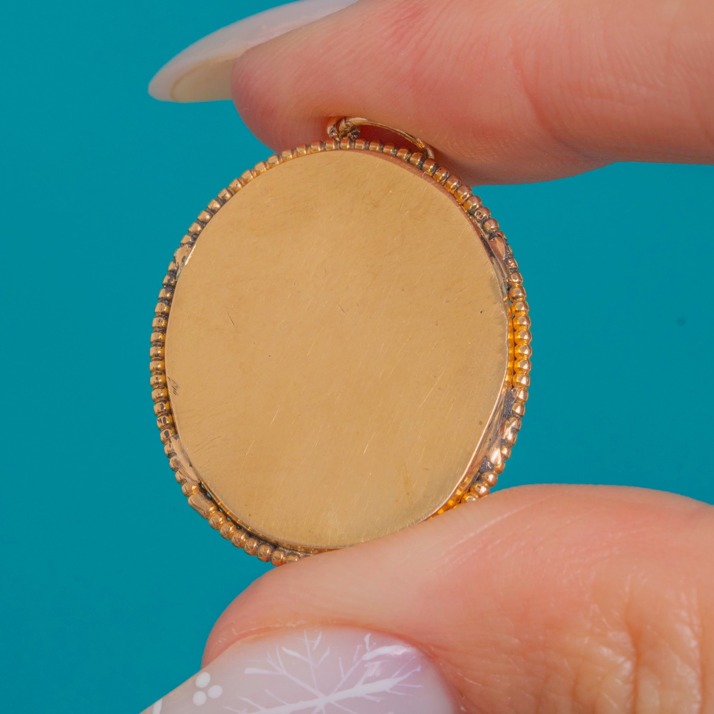 EXCELLENT: The Agate is bright and glossy with light natural micro-abrasions and a tiny surface pit visible under magnification; no chips or cracks observed. The closed-back gilt Sterling Silver and rope border remain crisp with gentle age-related wear and fine surface marks; the jump ring is secure. No visible repairs or alterations.