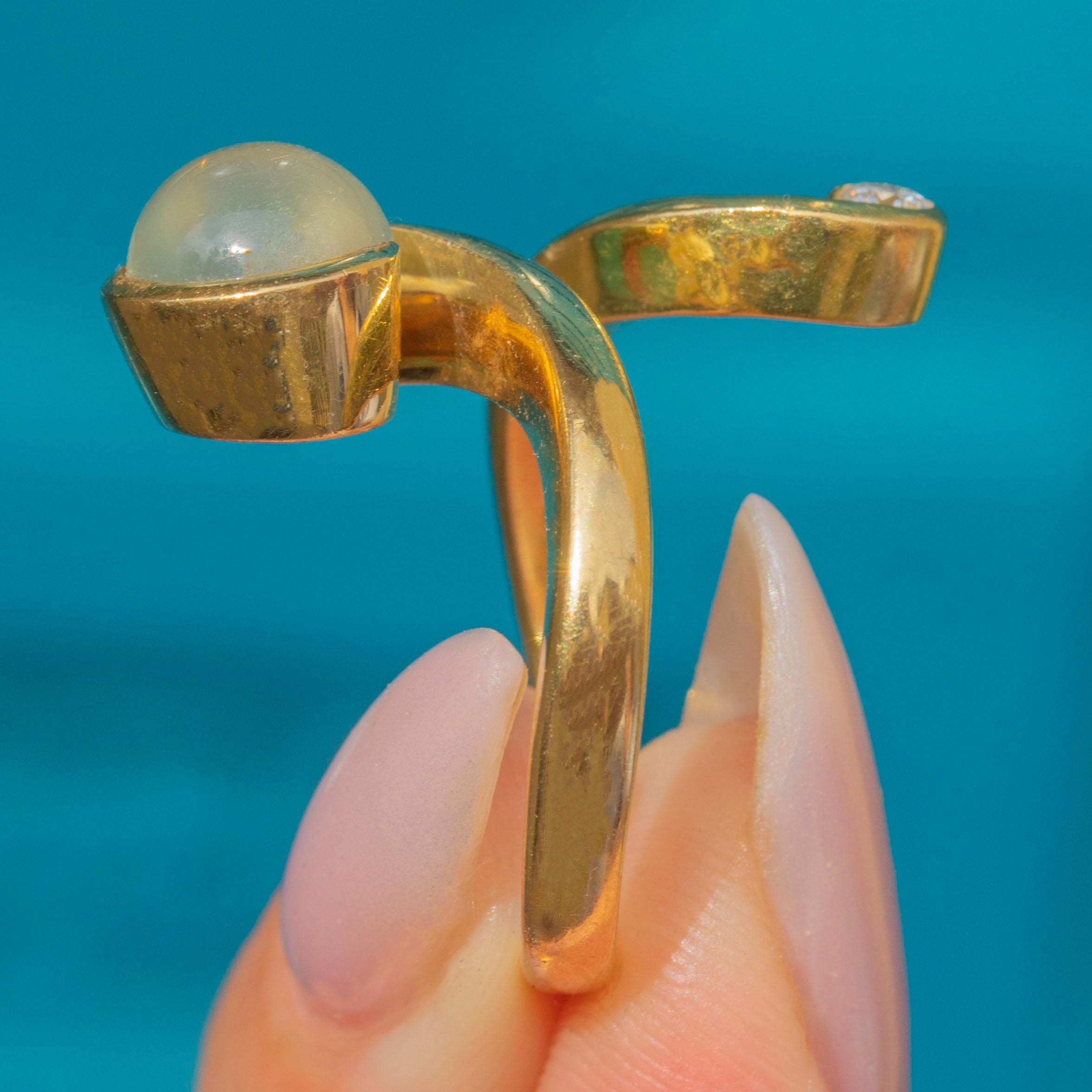 Heavy 18ct Gold Moonstone & Diamond "Swirl" Ring