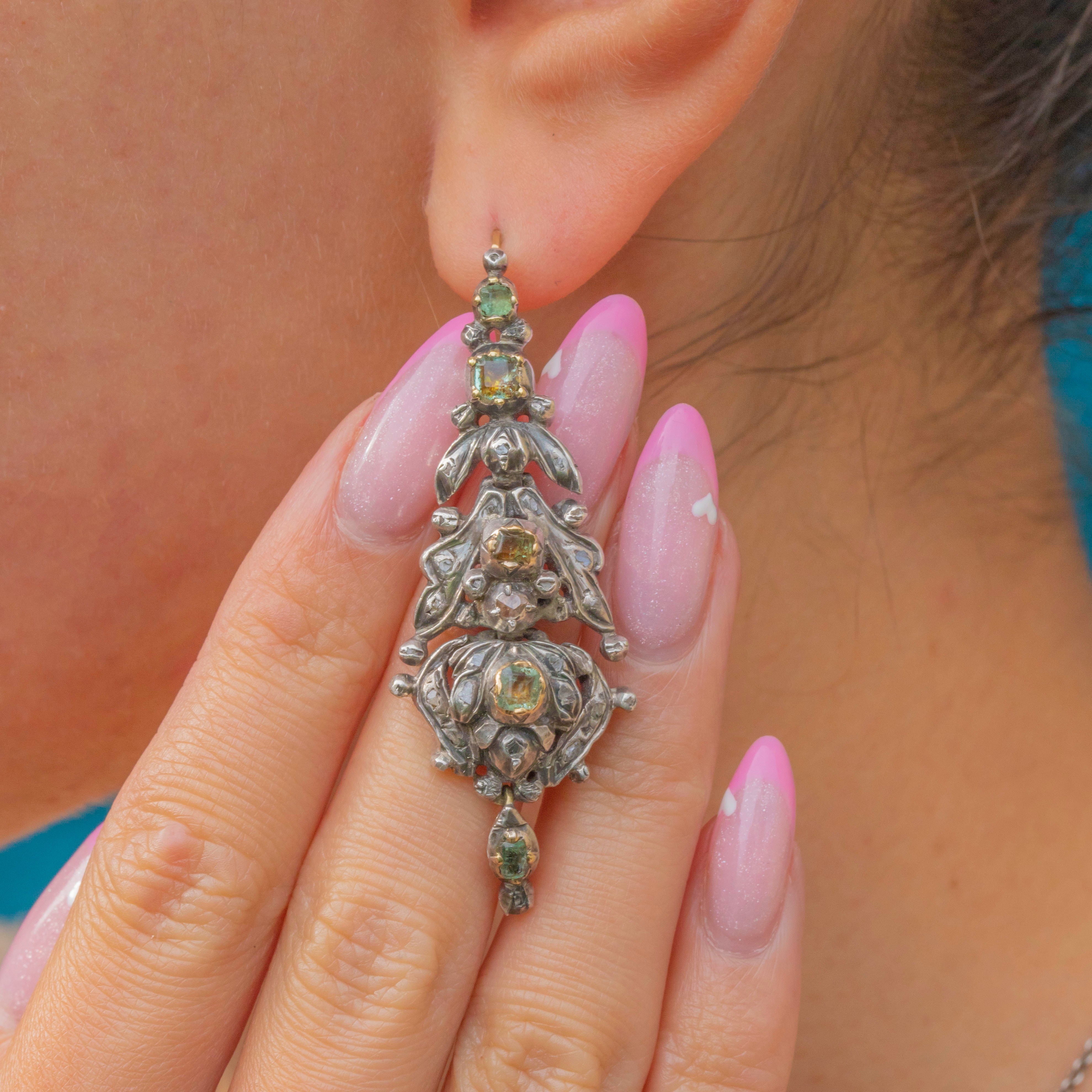 Iberian Emerald & Rose-Cut Diamond Drop Earrings, c.1780-1790