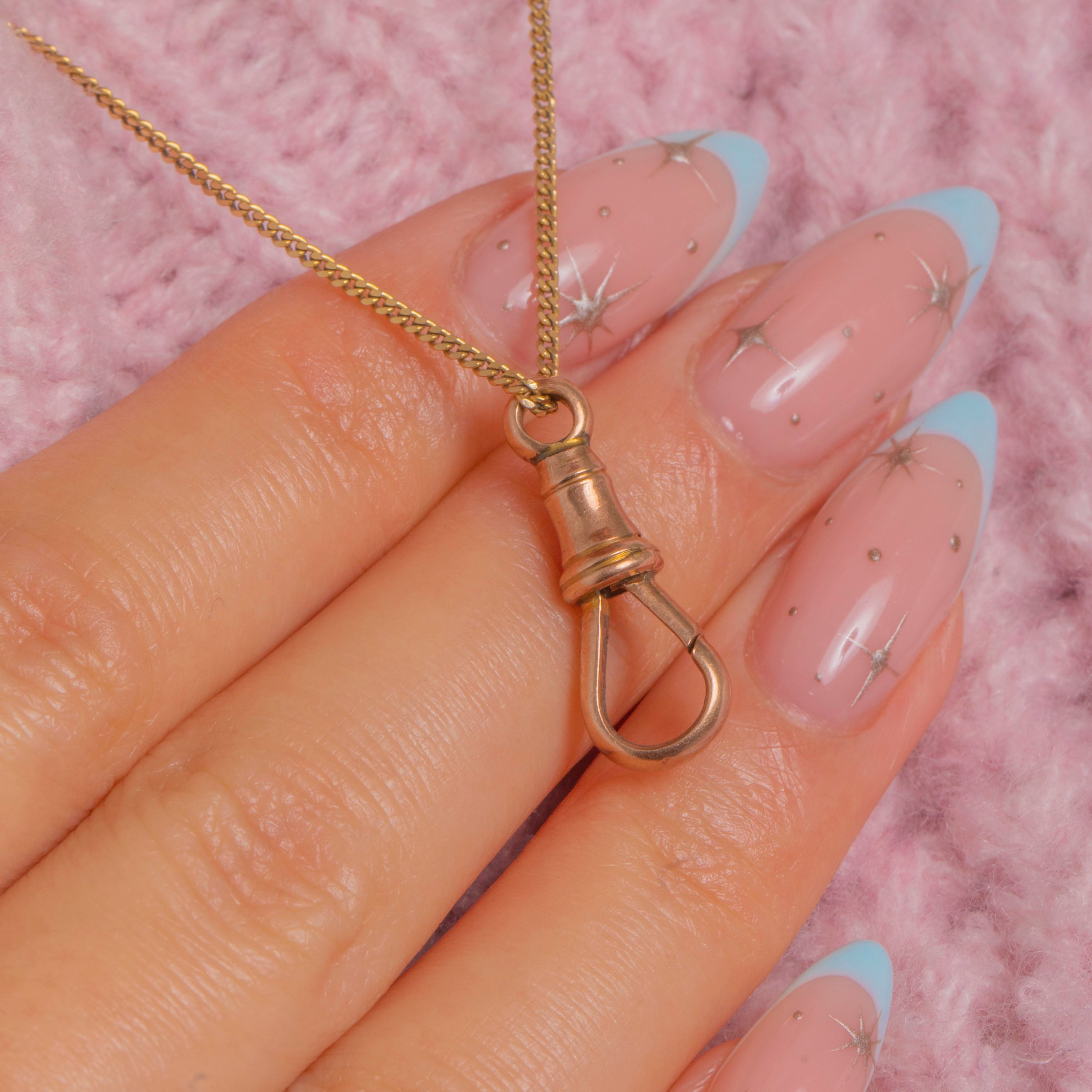 A classic Victorian dog-clip clasp in solid 9ct Gold, showcasing the sleek turned barrel and banded collars that define this timeless form. The sliding-collar spring gate works smoothly, offering that satisfying, precise action you want from an antique clasp.