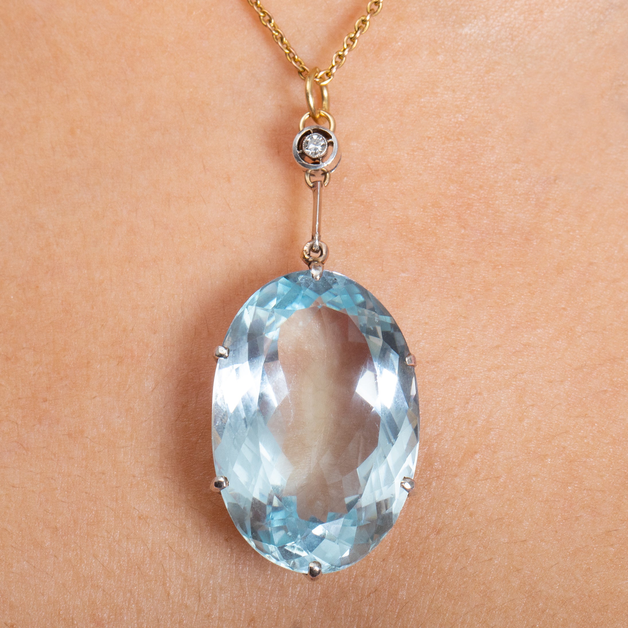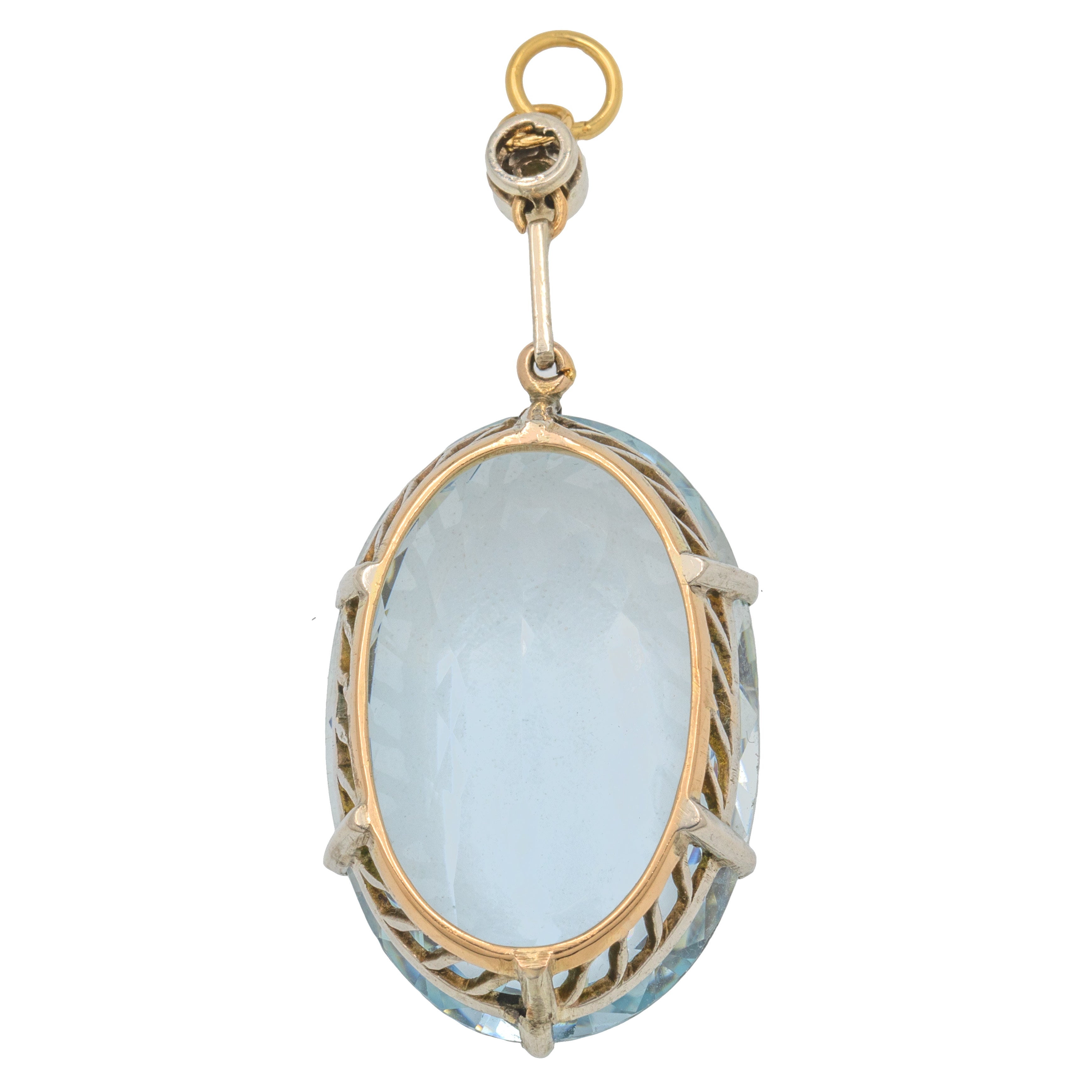 Edwardian Aquamarine Oval Pendant, 39.00ct