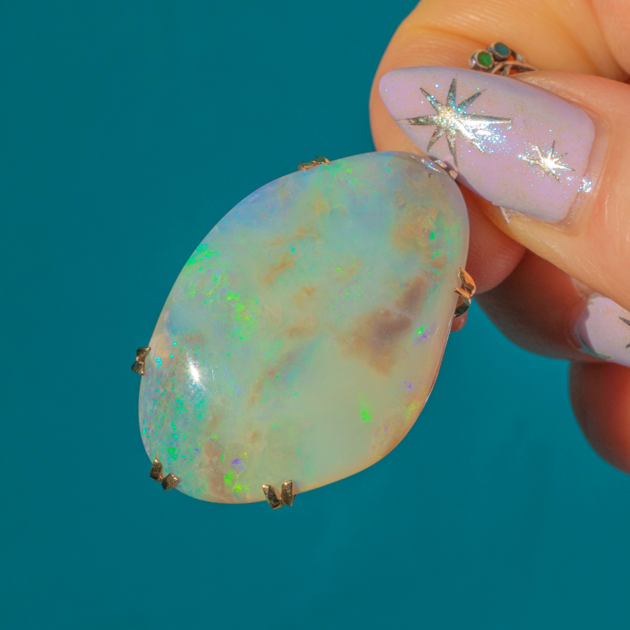 Opal is 37mm long x 22mm wide at widest point, weighing approx. 50.00ct.