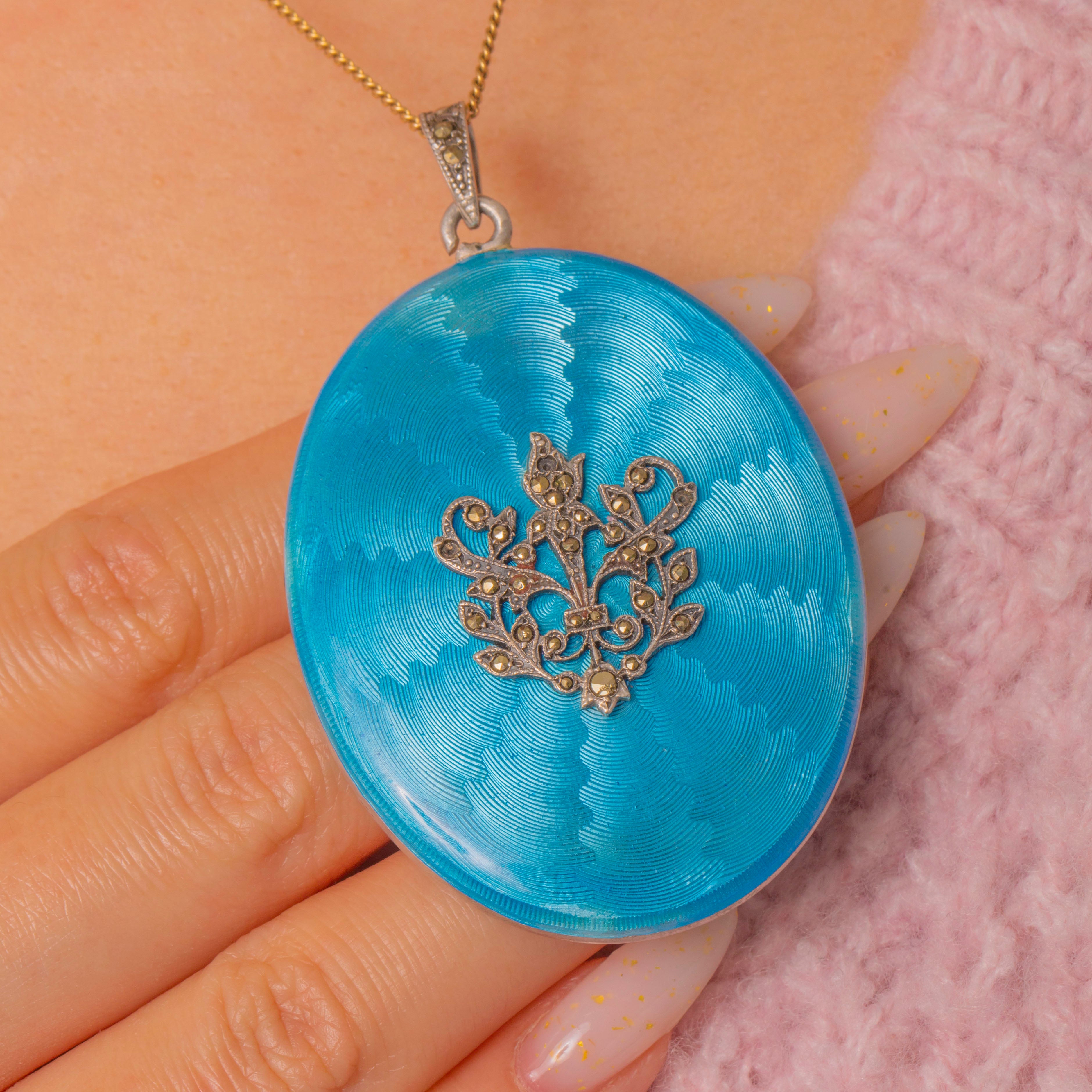 Large Edwardian Silver Baby Blue Enamel Marcasite Locket Item added