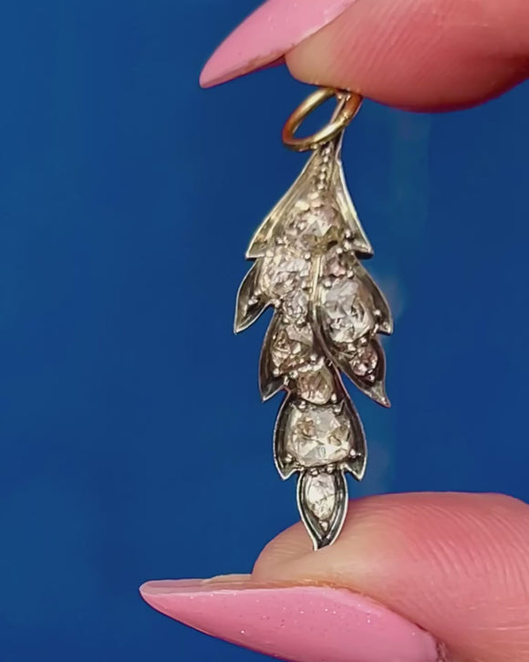 Large Rose Cut Diamond Leaf Pendant, 18ct Gold Backed