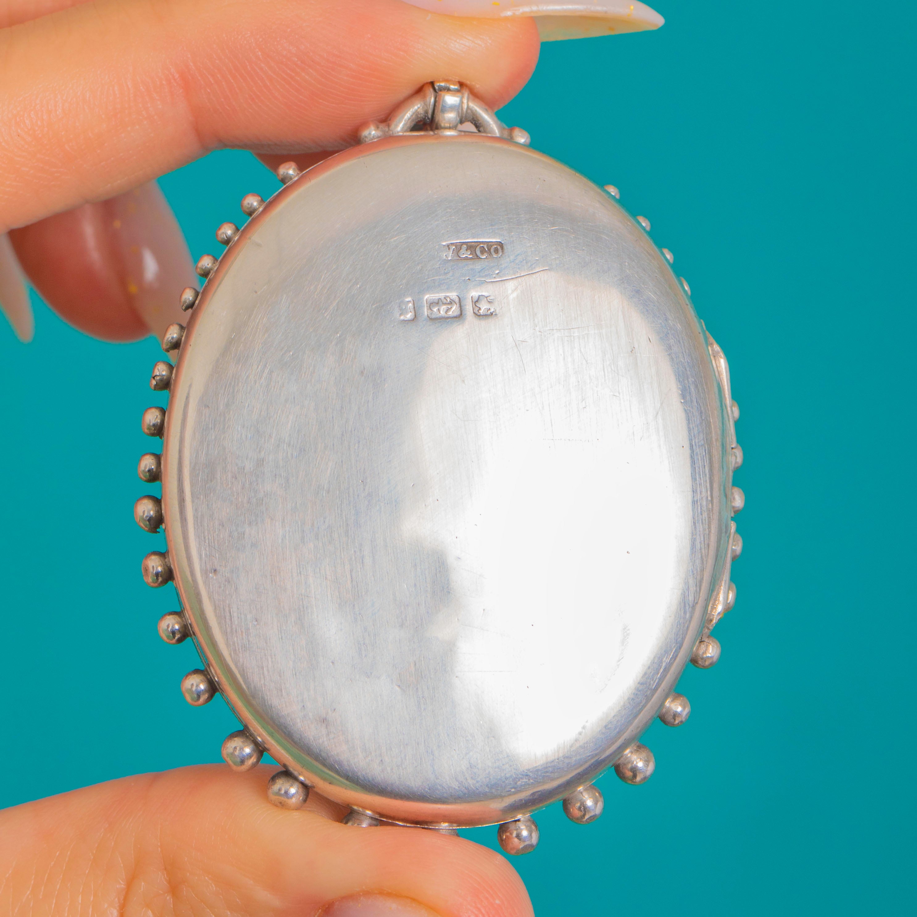Crafted in Sterling Silver and fitted with a classic Victorian bail, this piece closes with a reassuring click and opens to reveal one frame inside—ready to keep a treasured photograph close.