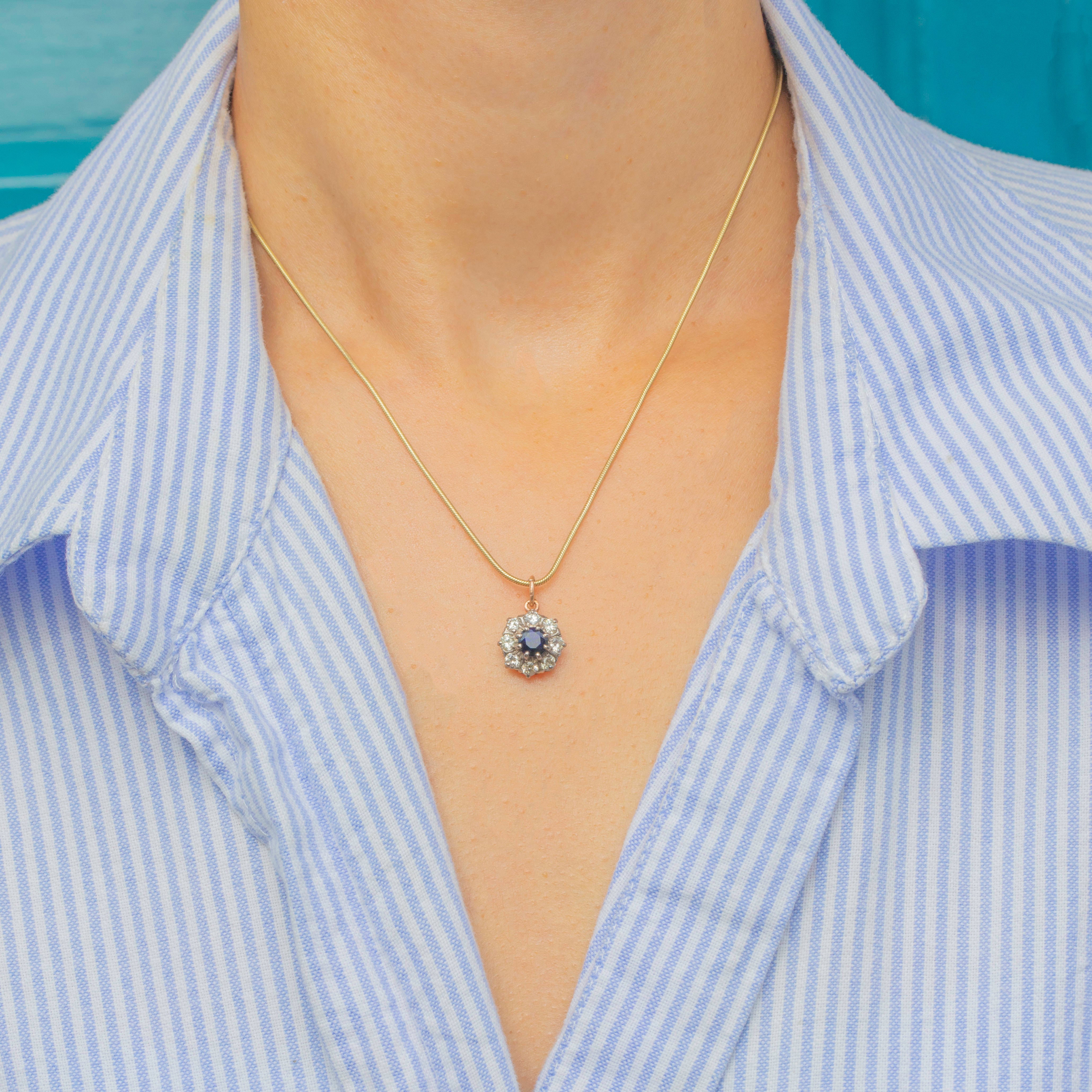 Mid-Century 9ct Gold Sapphire & Diamond Cluster Charm – 0.66ct Sapphire