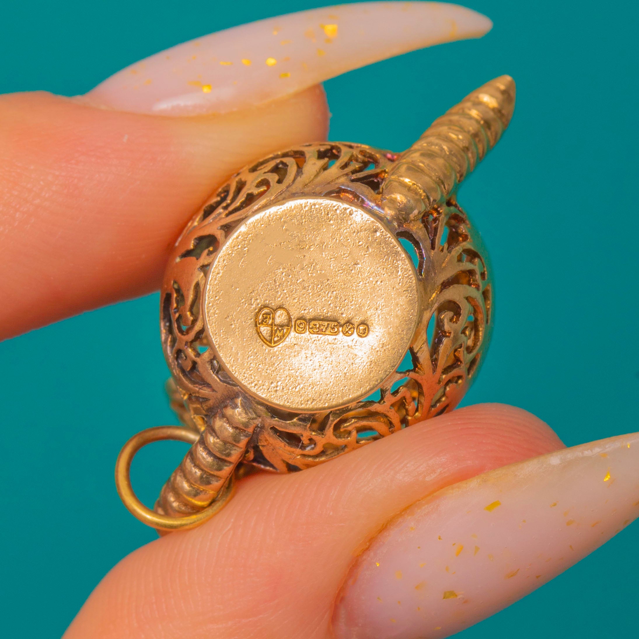 HALLMARKS: JM, 9, 375, date letter K for 1966, London Leopard