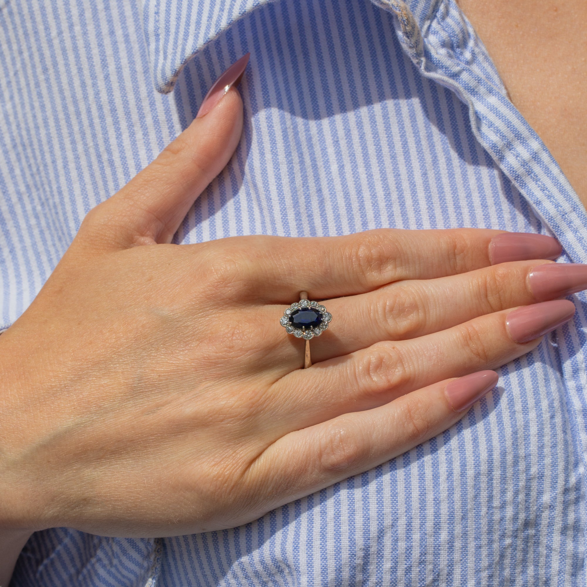 A cluster ring like this carries a timeless allure; the perfect pairing of Diamonds and Sapphires has remained popular since the late Princess Diana stepped out with hers in the early 1980s.