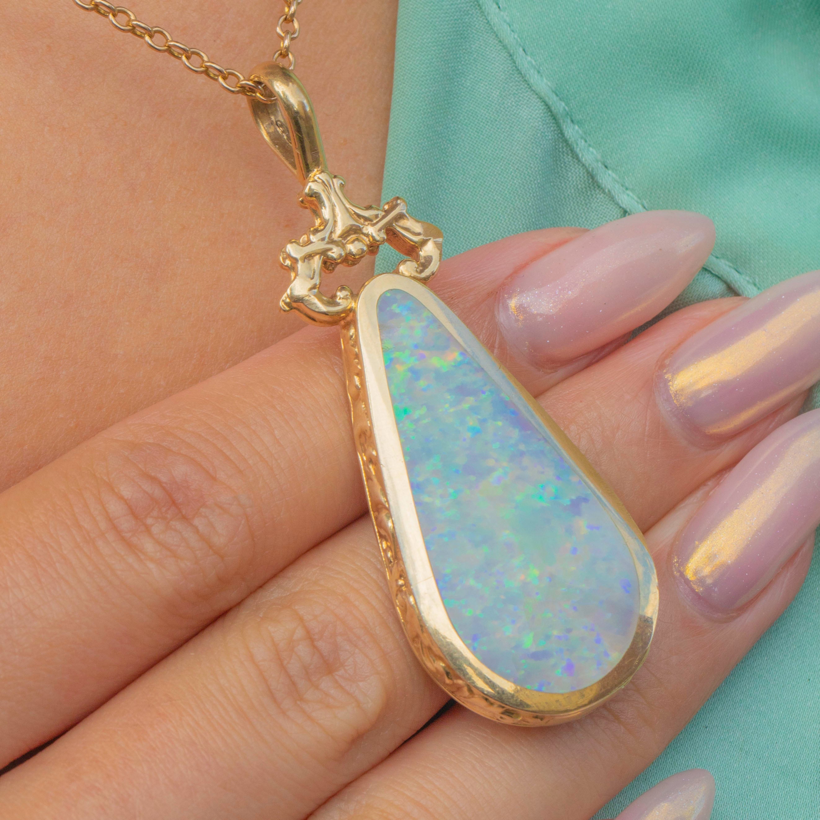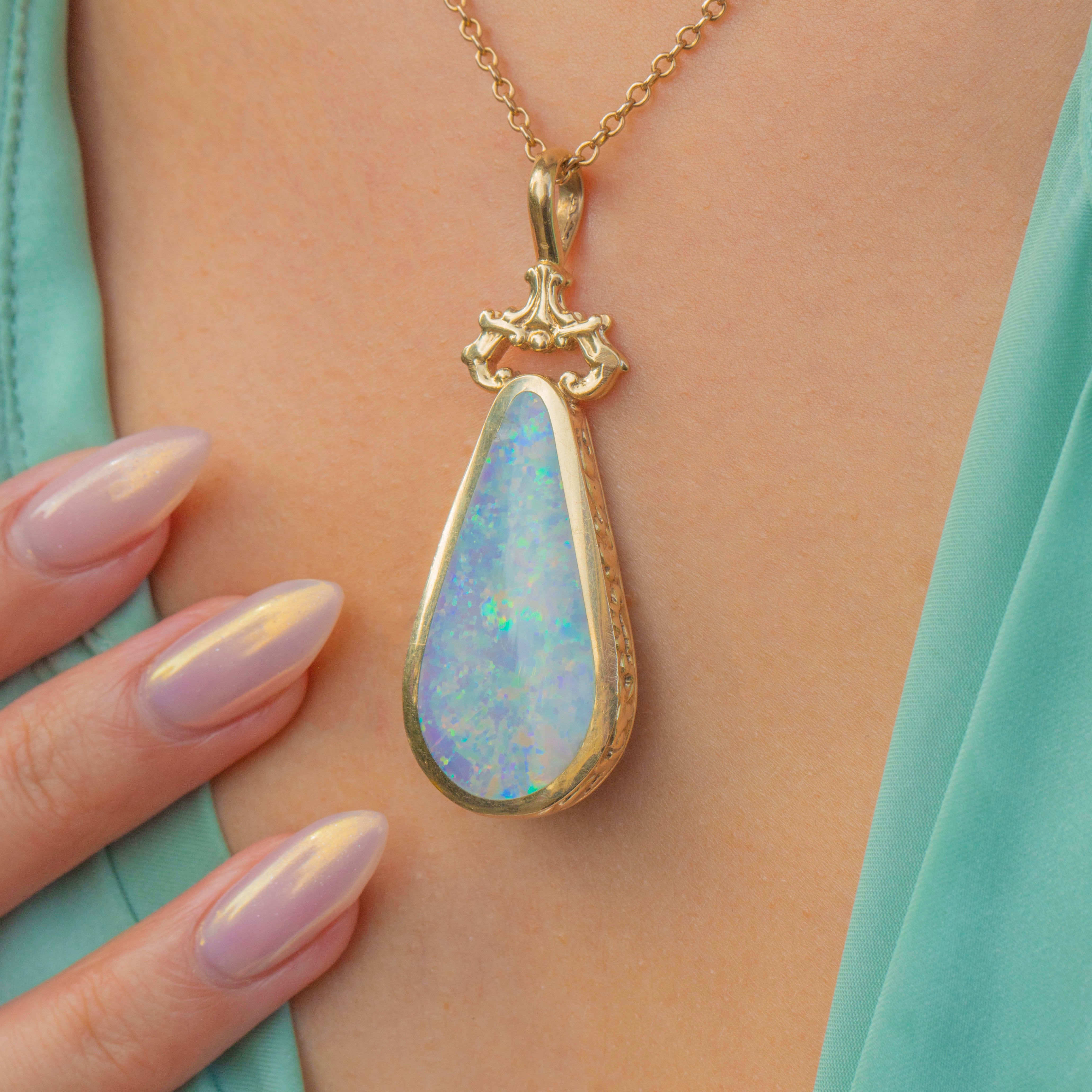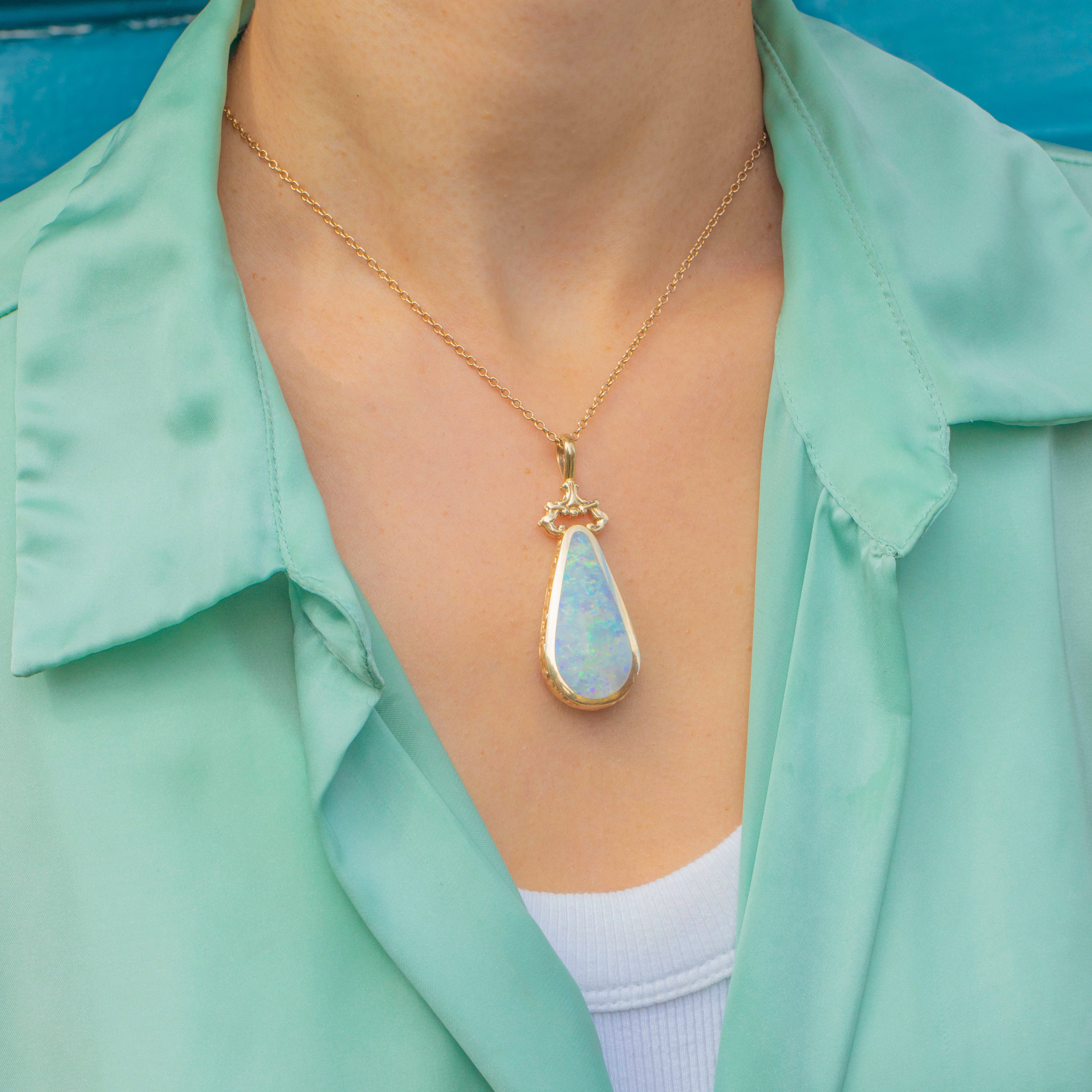 EXCELLENT: The stones are in superb condition with no chips or scratches, showing bright Opal fire and strong Lapis colour. The engraved Gold border is crisp, and the hallmarks are clear and legible. A very well-cared-for pendant.