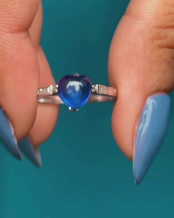 GARRARDS Platinum Sapphire Heart Cabochon Diamond Ring, Signed "Garrard's"