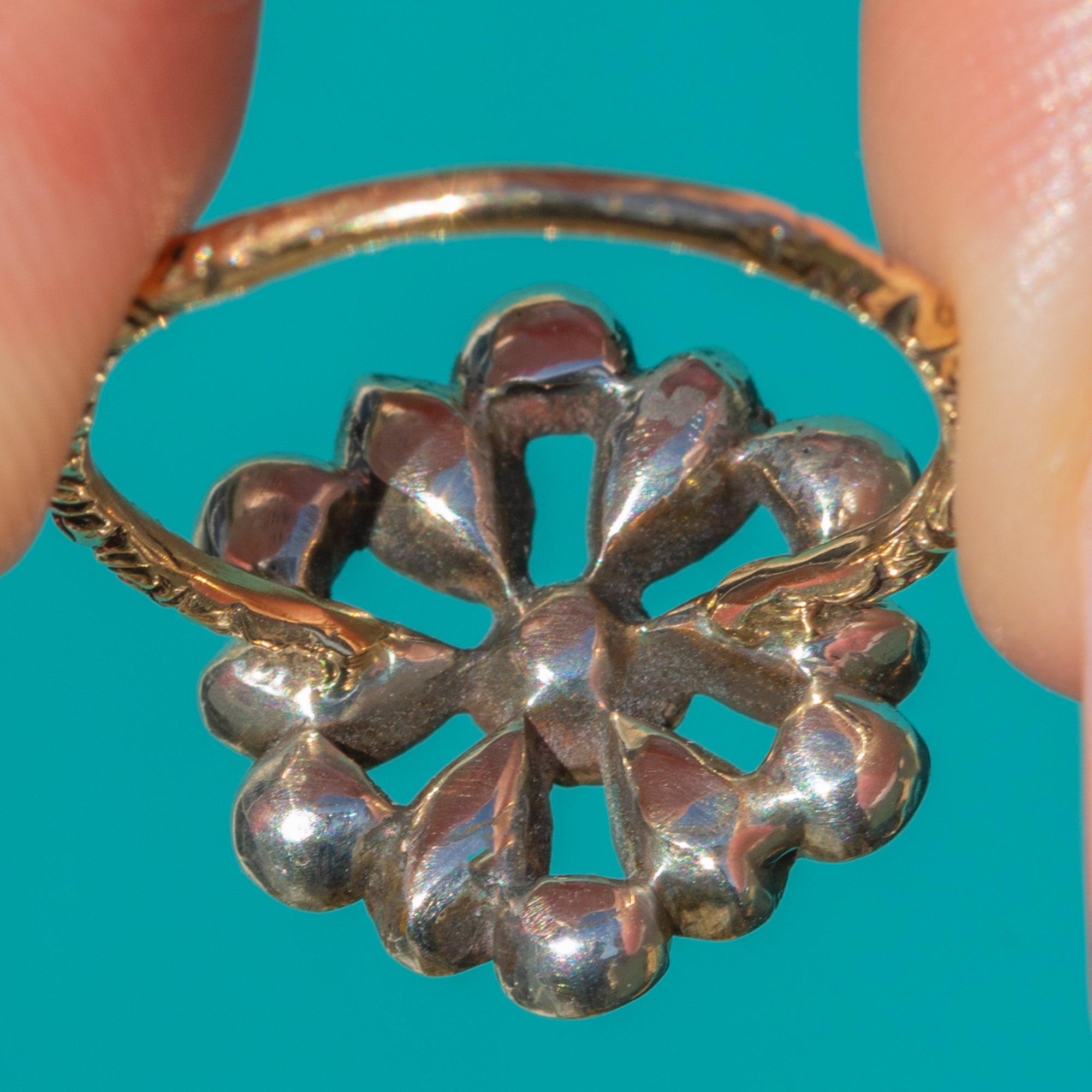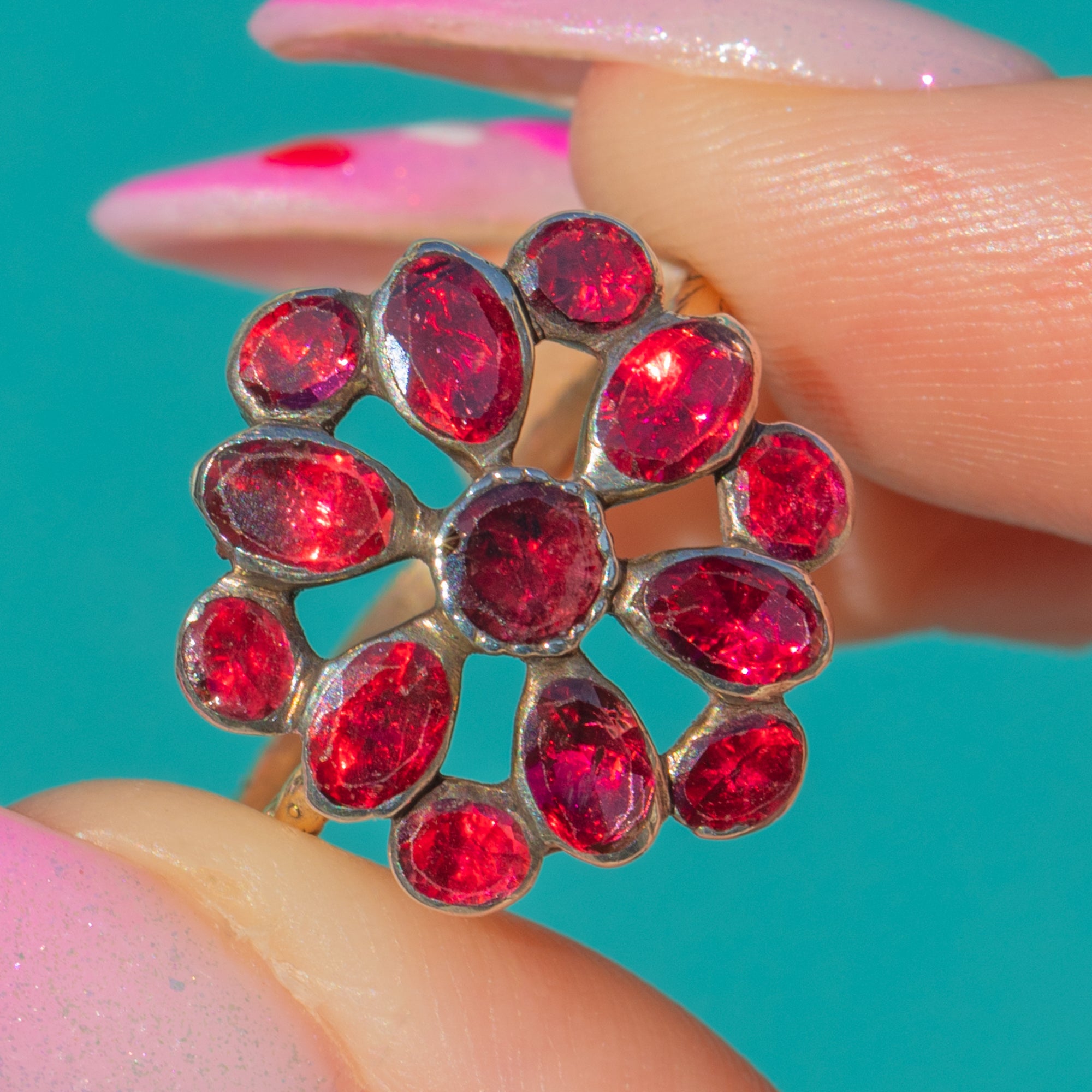 RARE 18ct Gold Georgian Flat-Cut Garnet Cluster Ring, c.1780