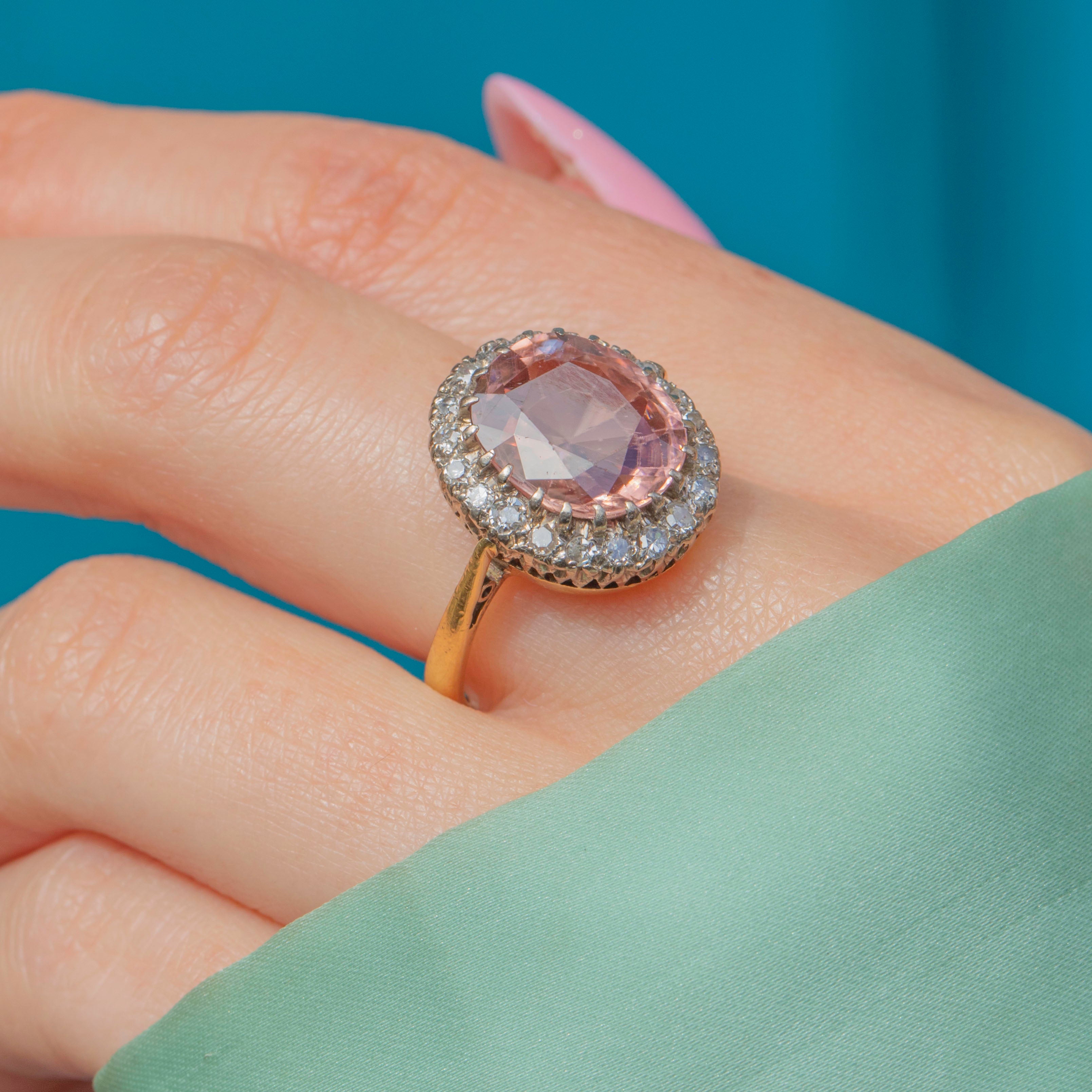 Rare 18ct Gold Pink Zircon Diamond Cluster Ring, 6.00ct Zircon