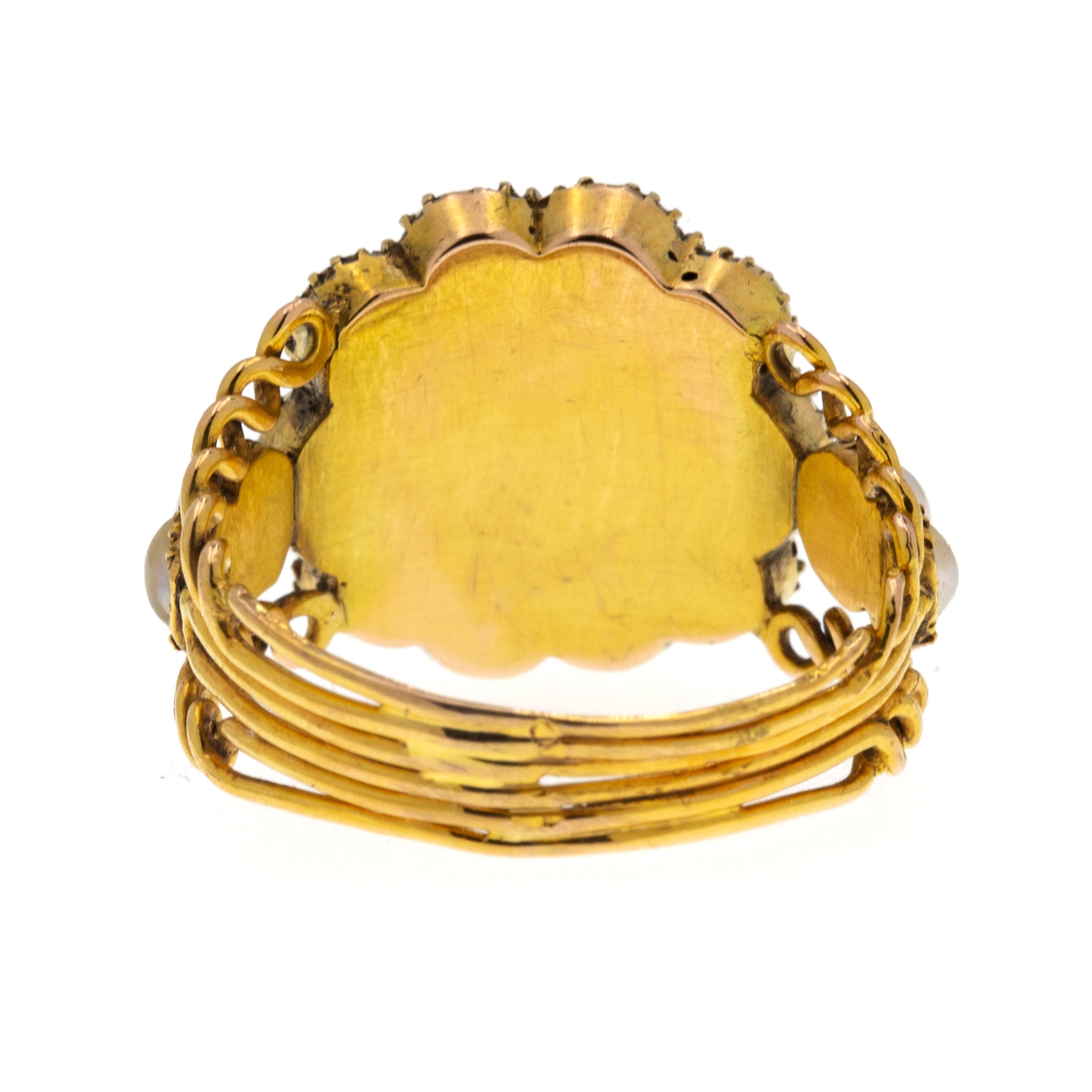The 9ct Gold ring band has been constructed by individual wires that come together in a sleek design, a display of Georgian craftsmanship that is unique to the era. Over 200 years old, this incredible Georgian ring will be a fabulous addition to your collection, sure to captivate others with beauty and enthrall them with its rich history!