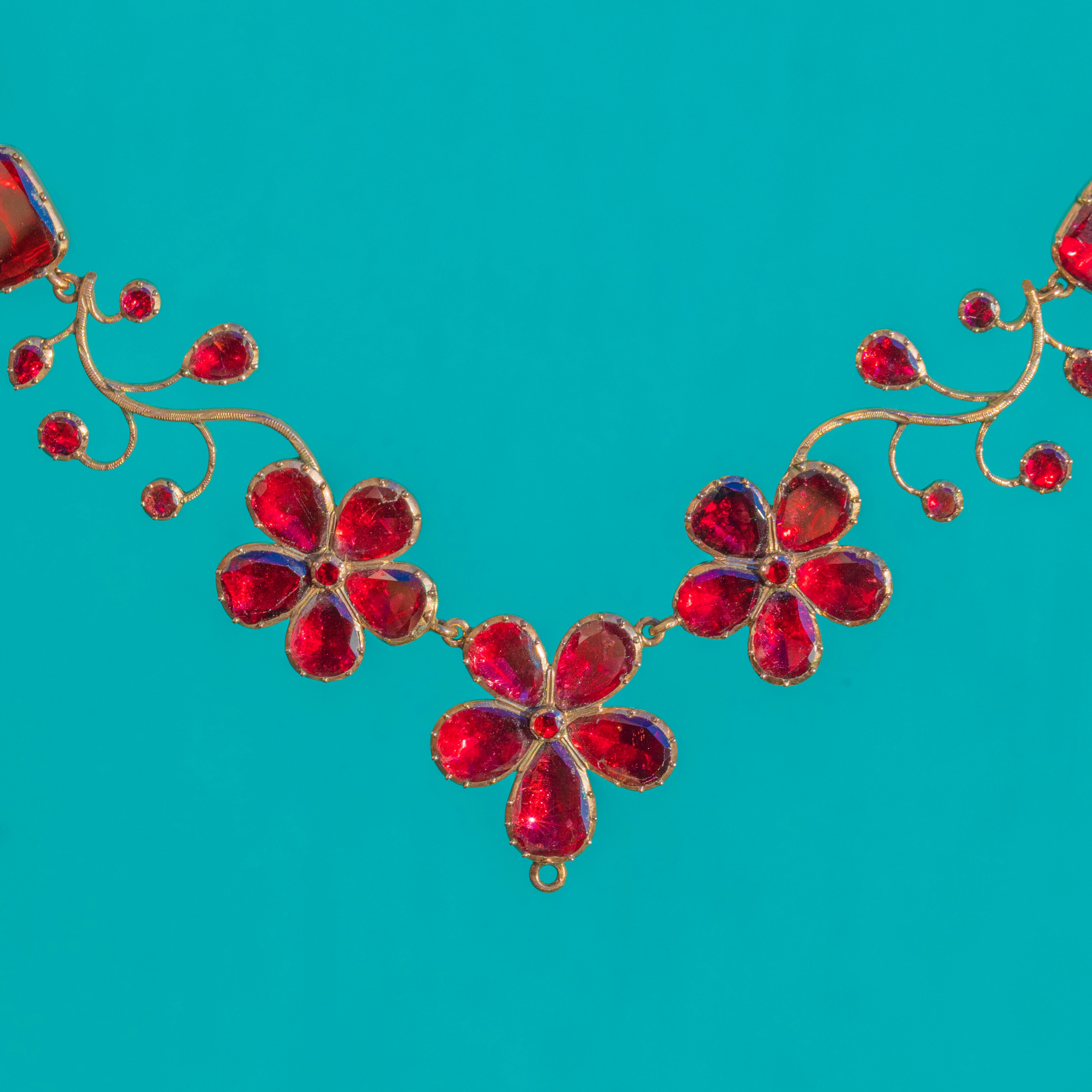 RARE Foiled Georgian Garnet Pansy Necklace, c.1820